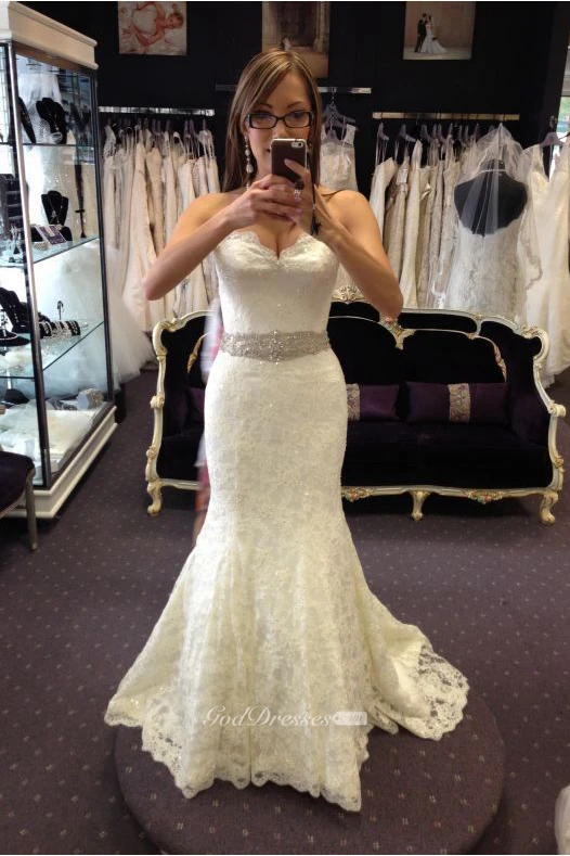 Sweetheart Lace Mermaid Dress With Beading Waist