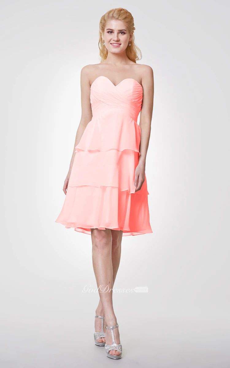 Sweetheart Layered A-line Chiffon Knee Length Dress