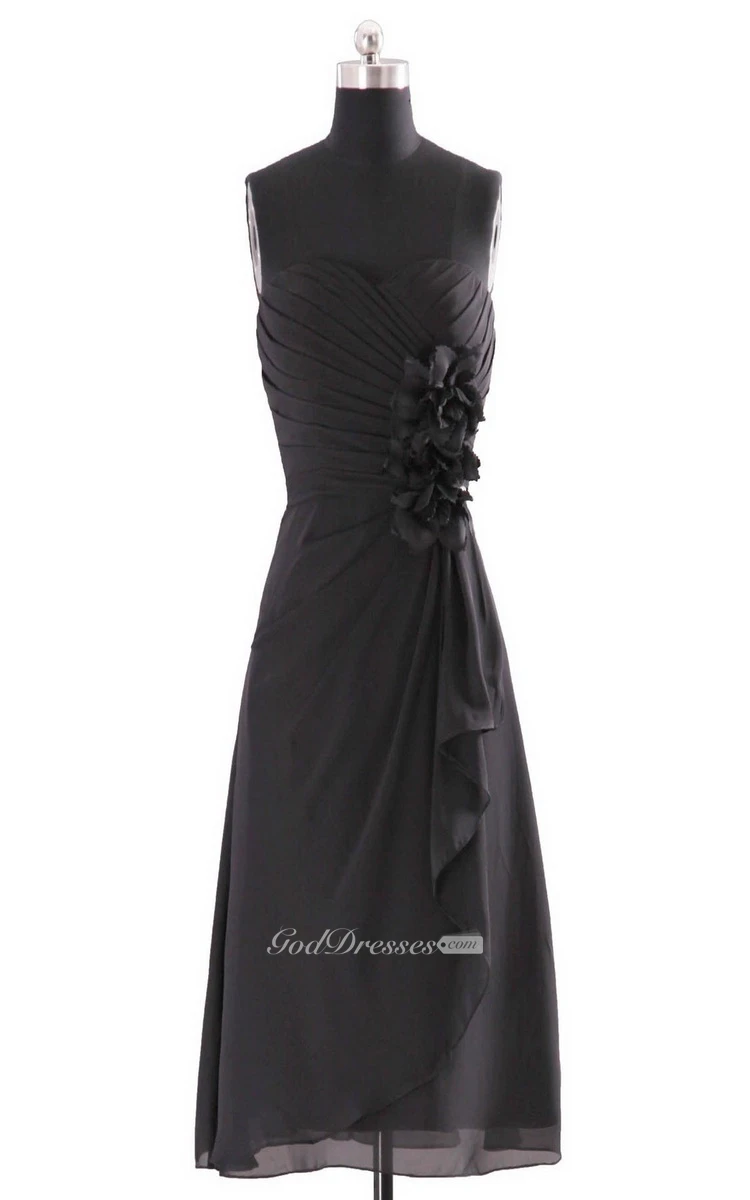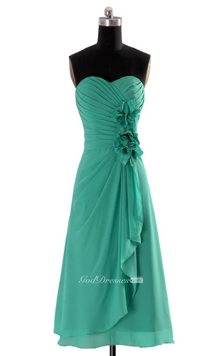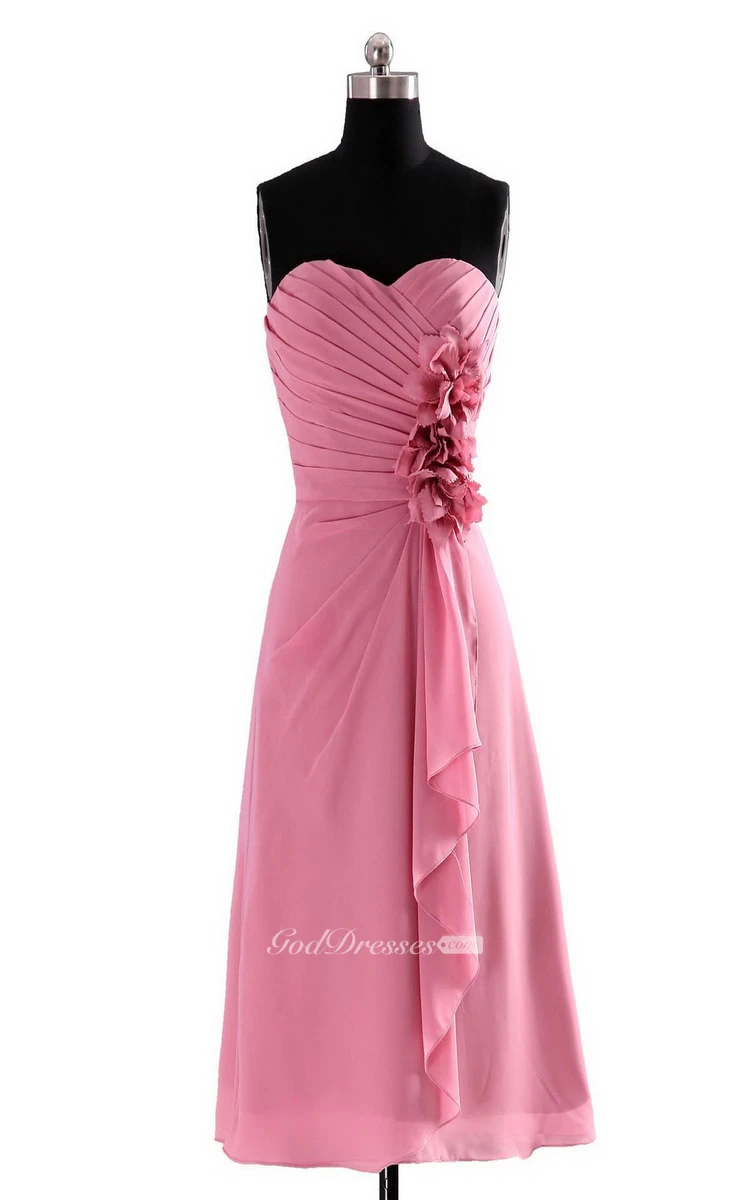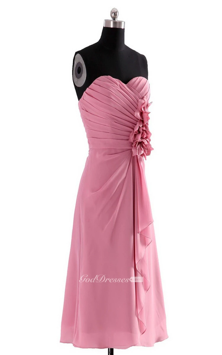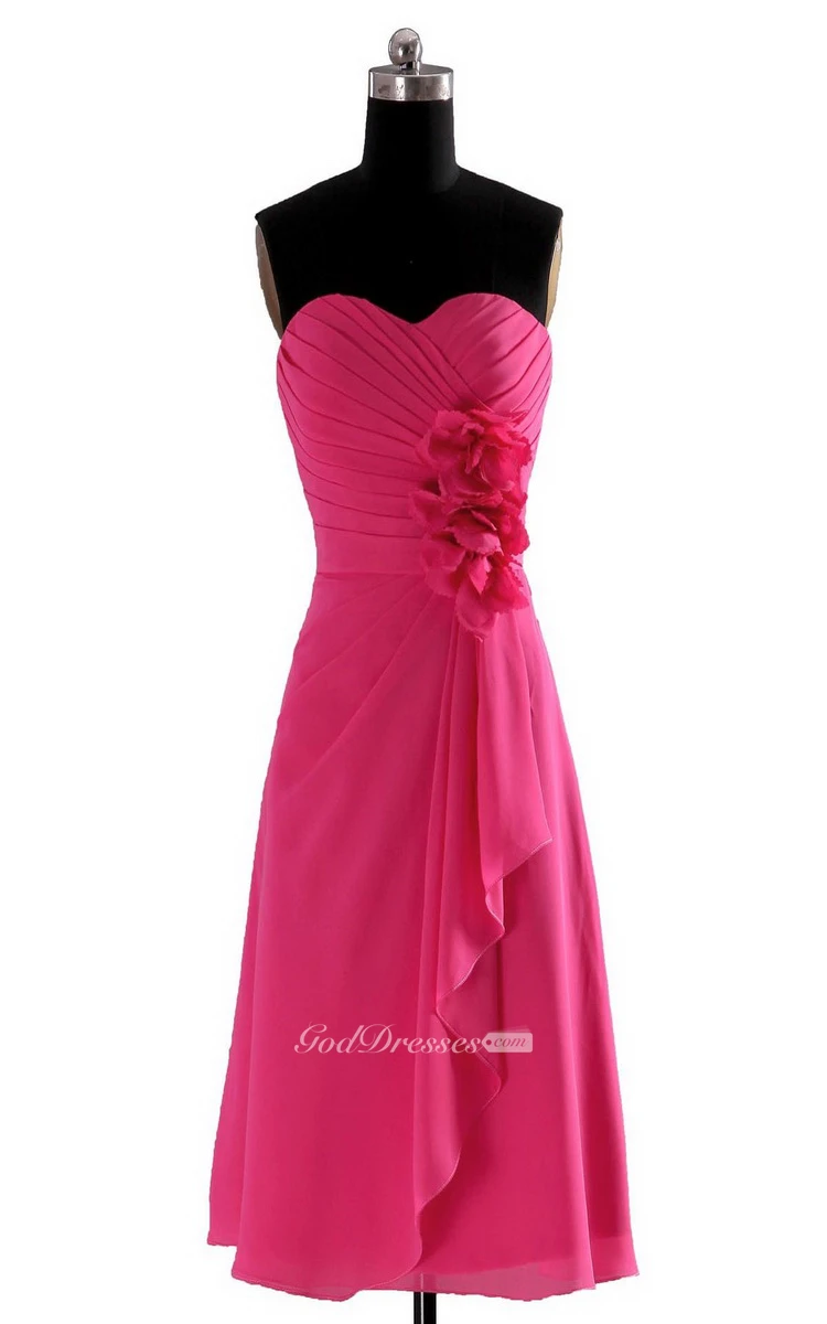 Sweetheart Layered Chiffon Dress With Flowers