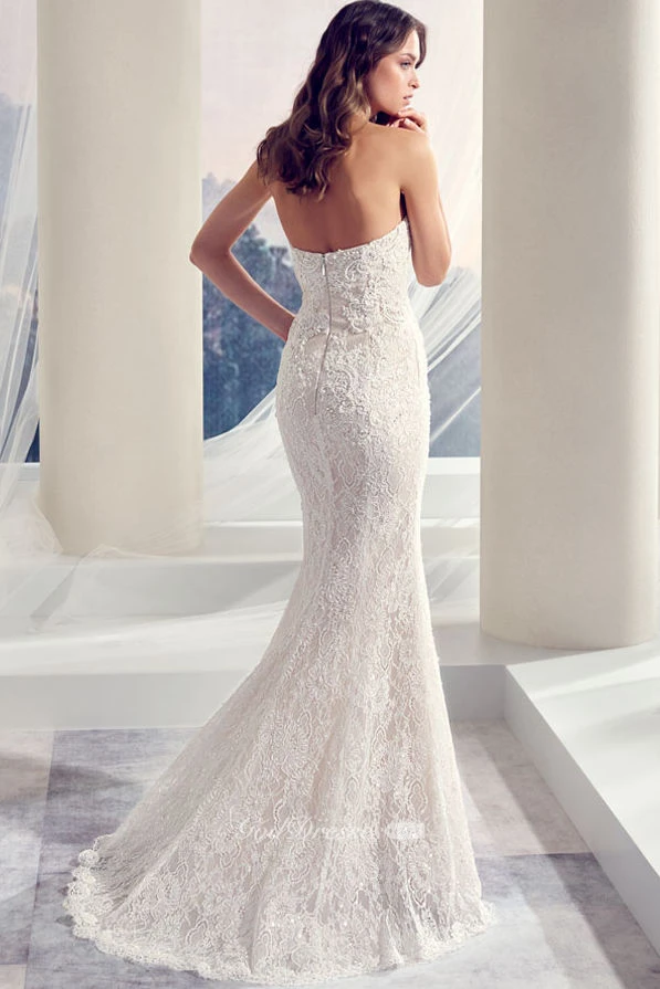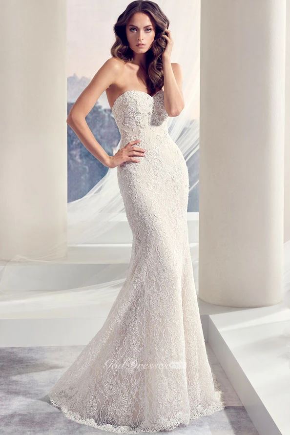 Sweetheart Long Beaded Lace Wedding Dress With Sweep Train