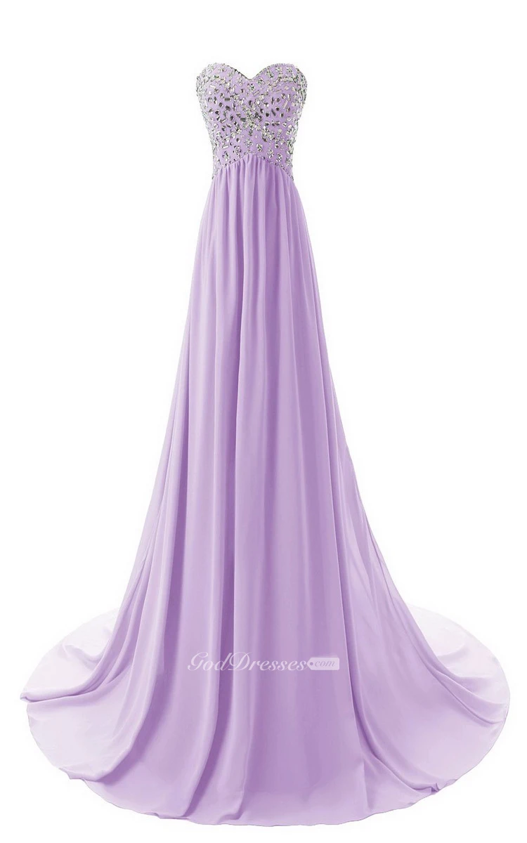 Sweetheart Long Chiffon Gown With Crystal Bodice
