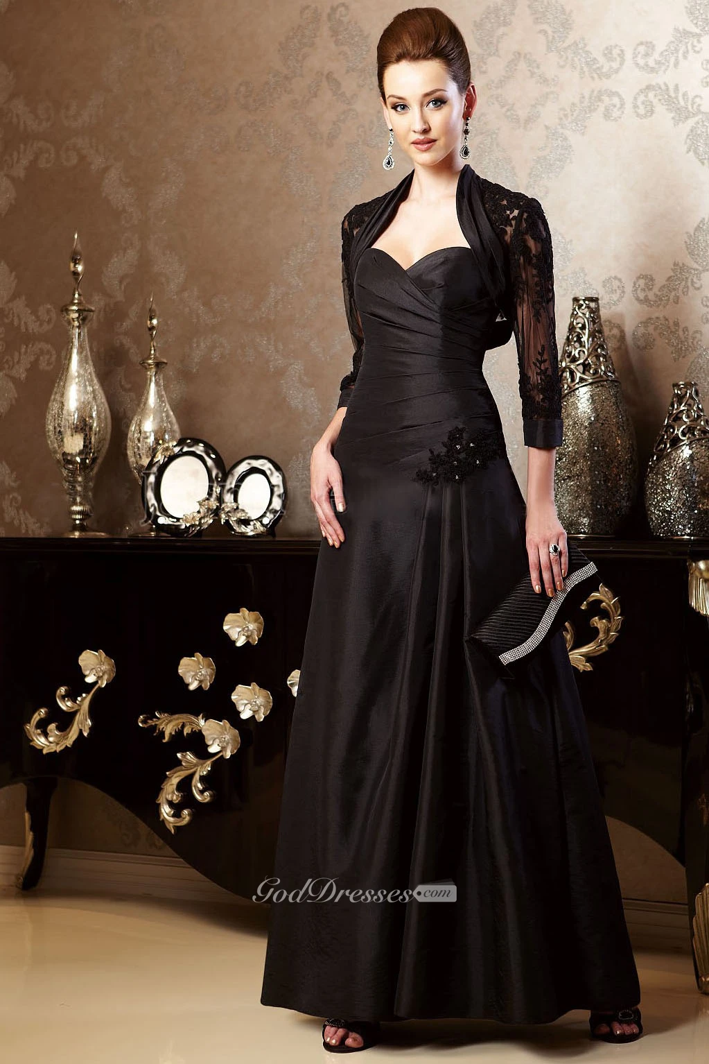 Sweetheart Long Mother Of The Bride Dress With 3-4 Sleeved Jacket Style And Beadings