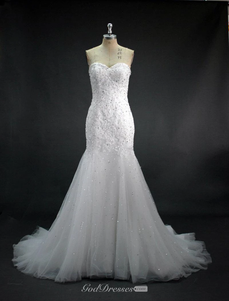 Sweetheart Mermaid Lace and Tulle Dress With Beadings and Sequins