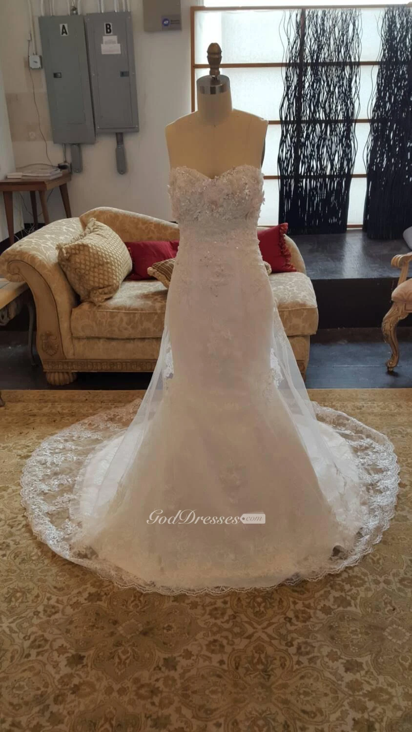 Sweetheart Mermaid Strapless Lace Wedding Dress With Beading Bodice