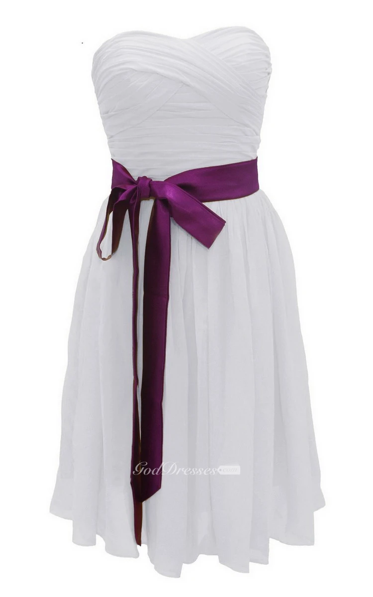 Sweetheart Mini Chiffon Dress With Sash Waist