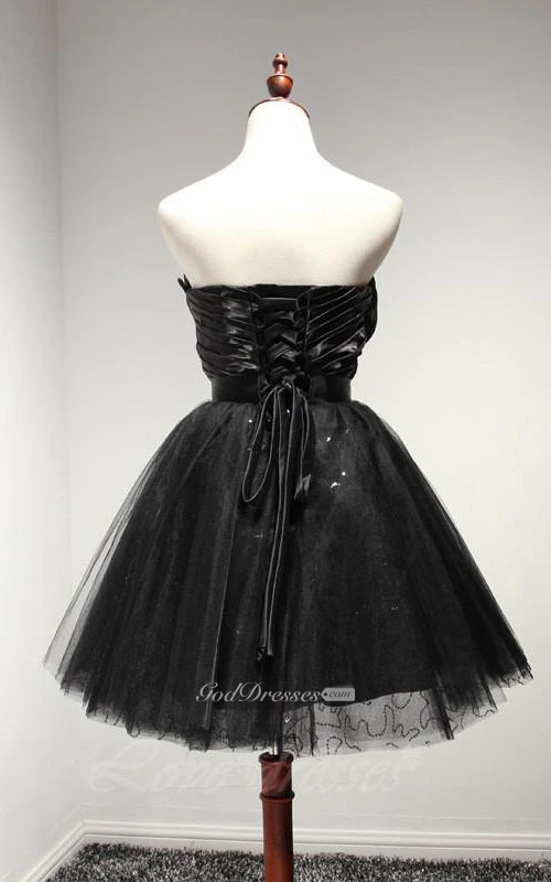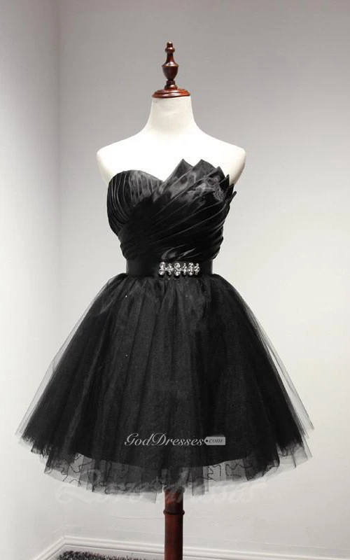 Sweetheart Neck Pleated Short Tulle Cocktail Dresses