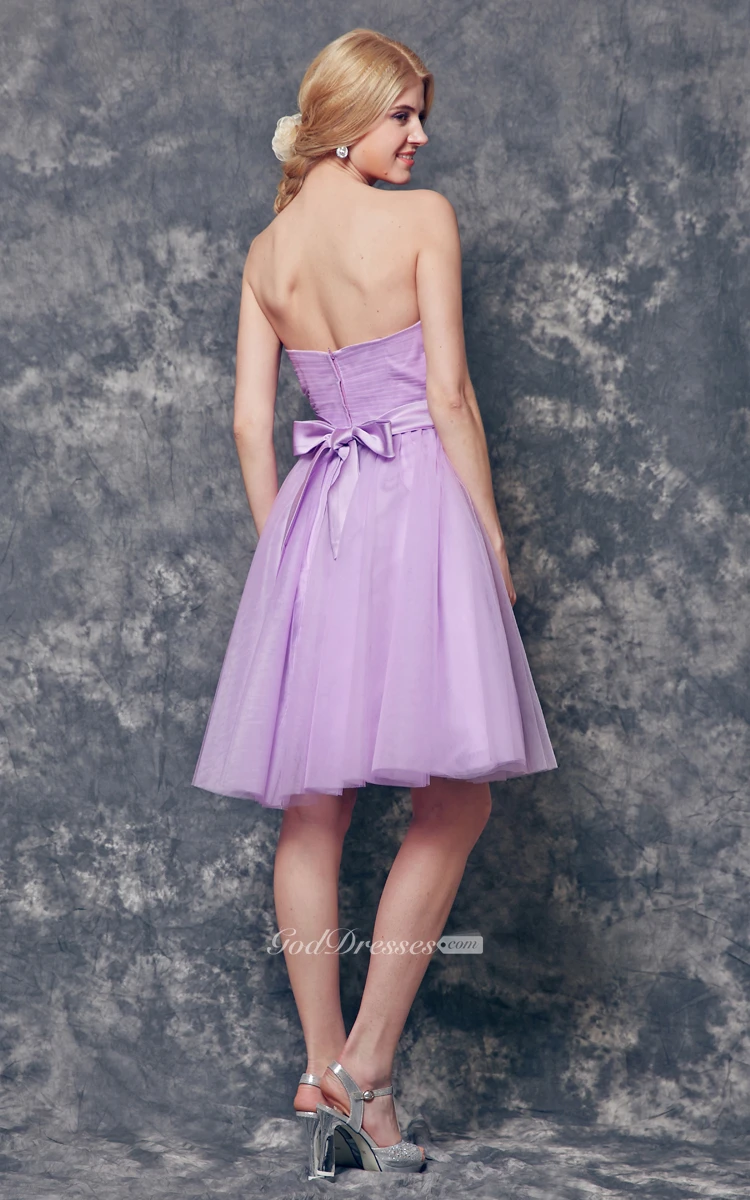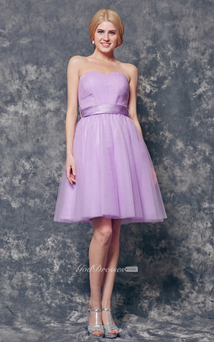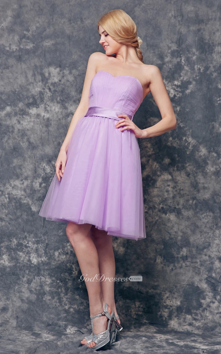 Sweetheart Pleated A-line Short Tulle Dress With Sash
