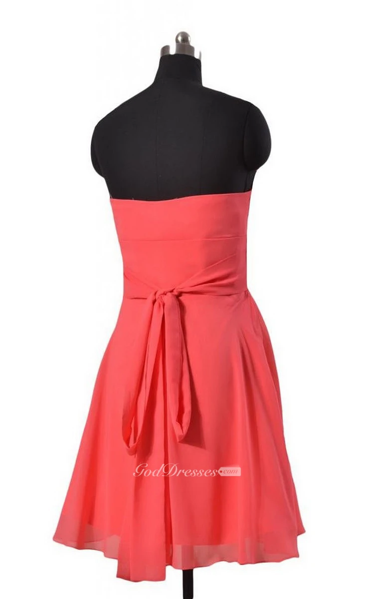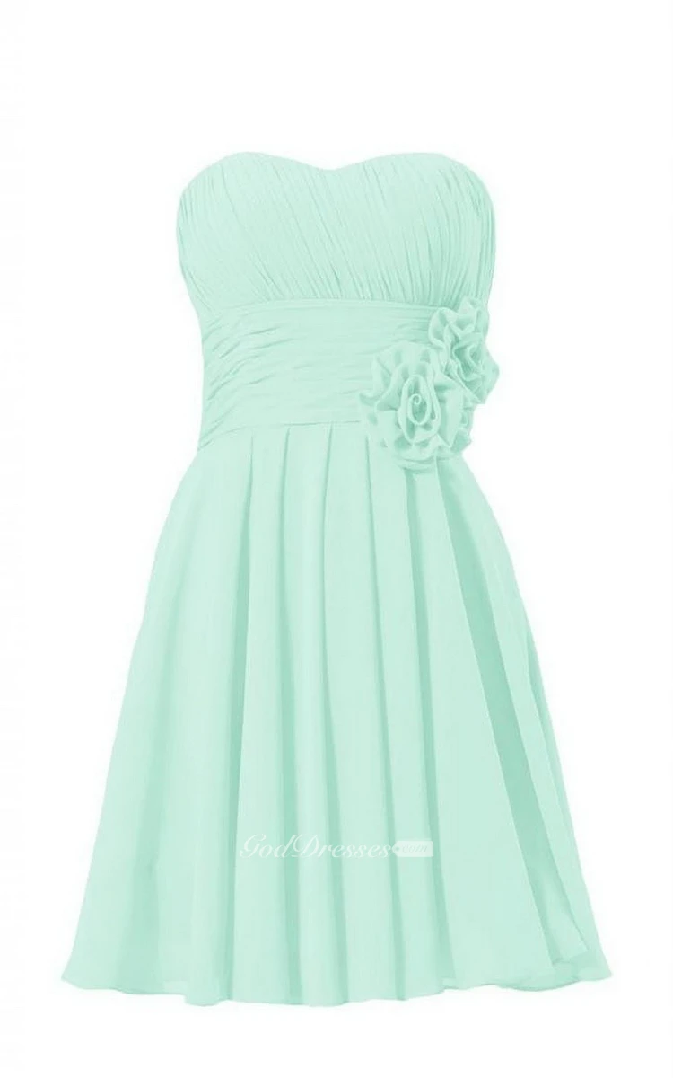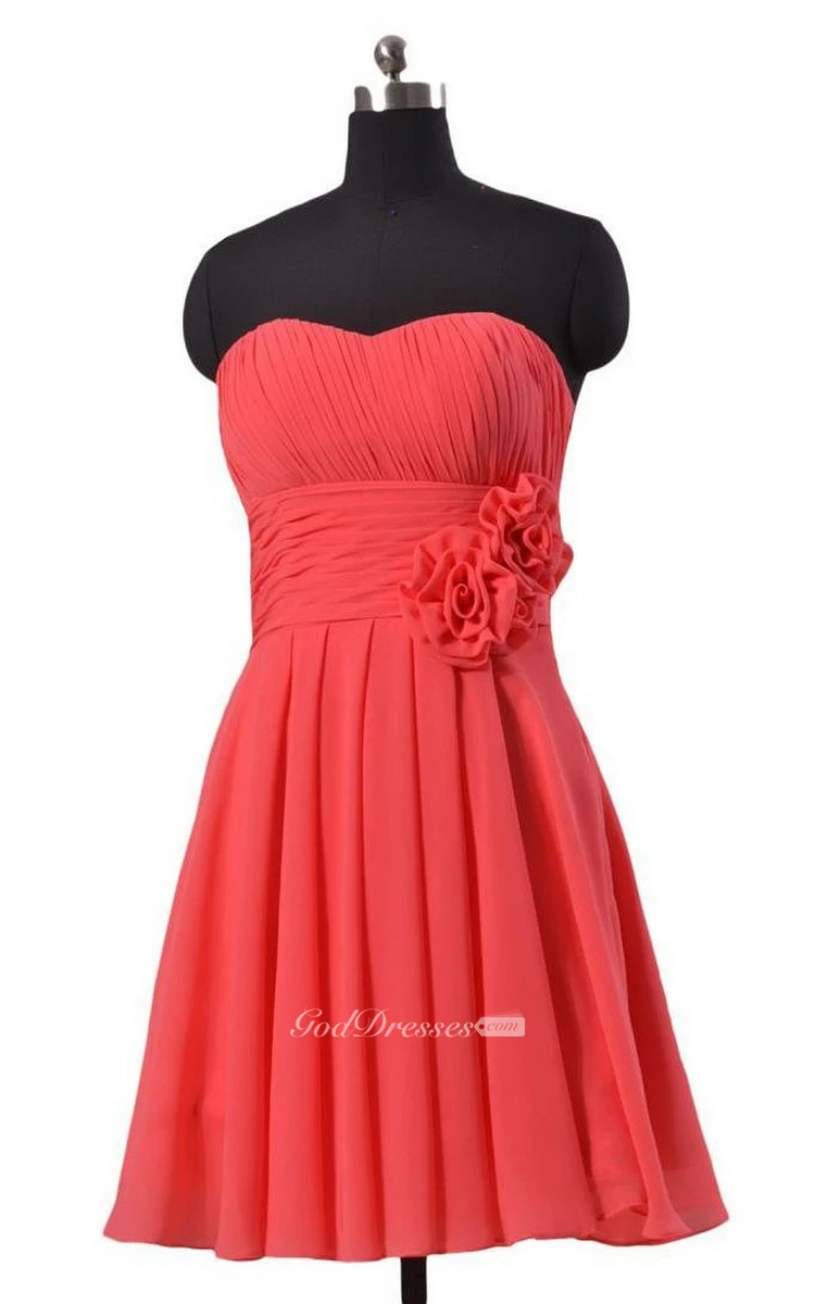 Sweetheart Pleated Chiffon A-line Gown With Floral Sash
