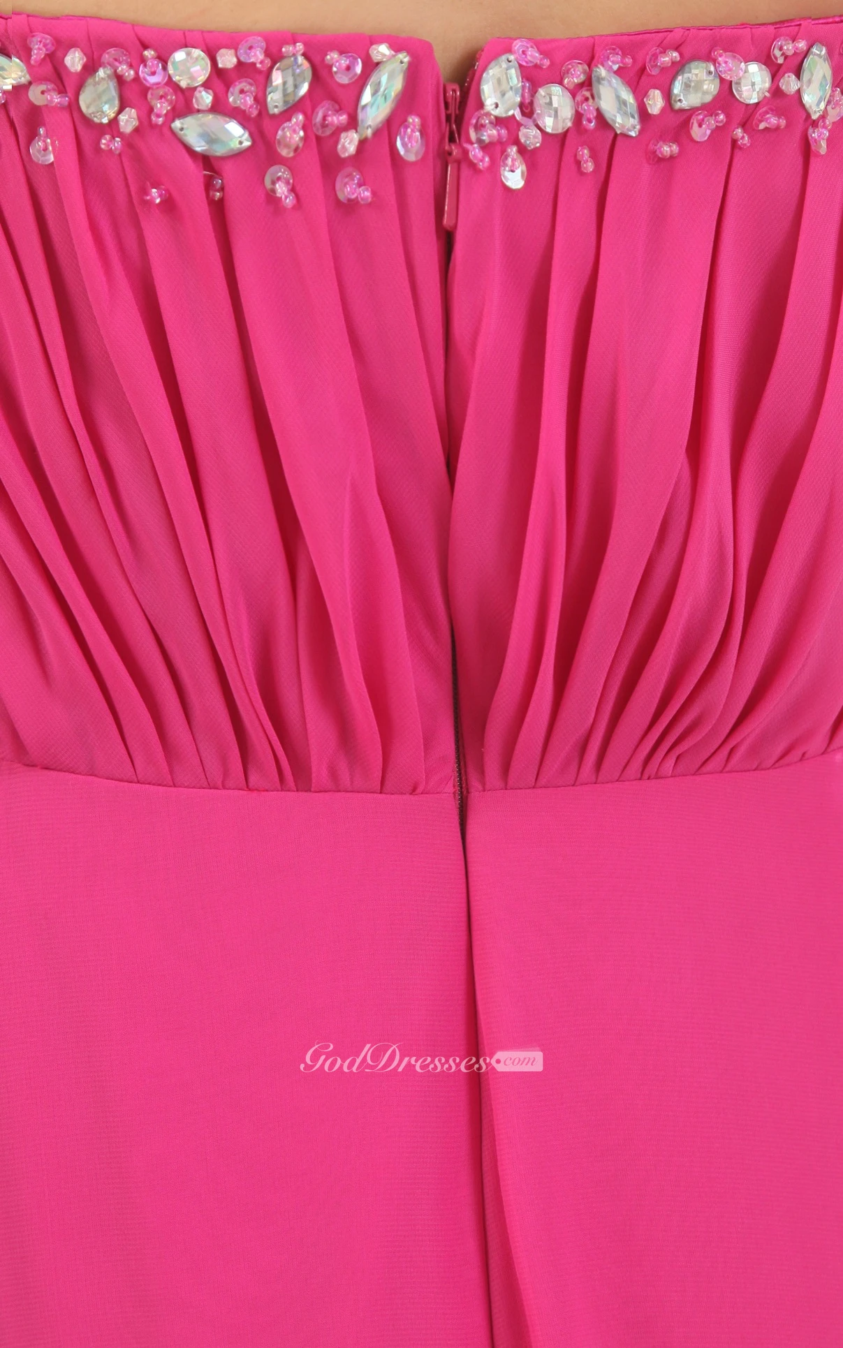 Sweetheart Pleated Chiffon Dress With Beading and Zipper Back