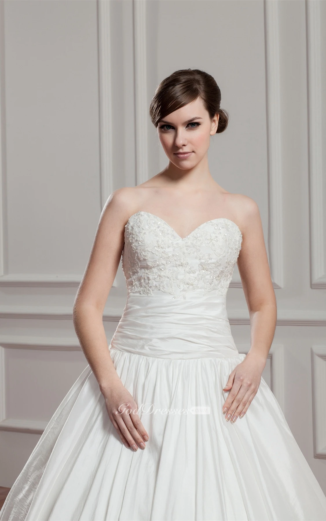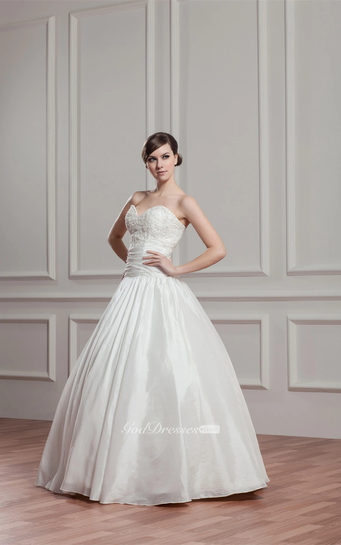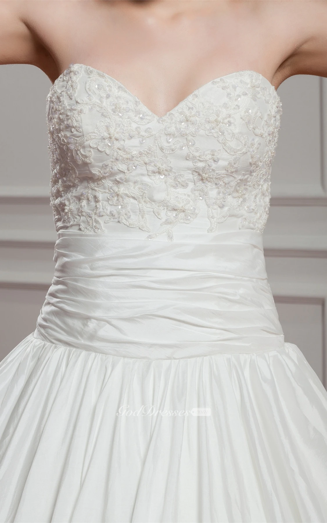 Sweetheart Pleated Ruched Waist and Ball-Gown With Beading