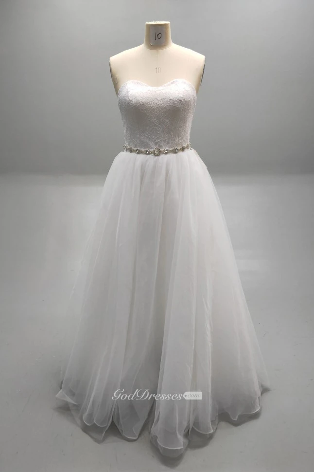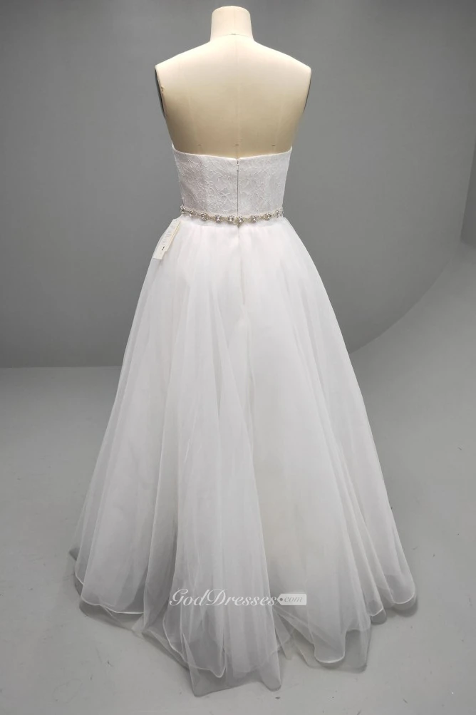 Sweetheart Pleated Tulle Ball Gown With Lace Bodice