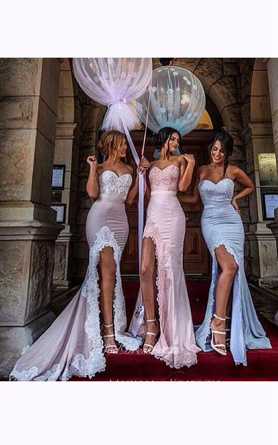 Sweetheart Pleats Split Front Ruffles Zipper Chiffon Lace Dress