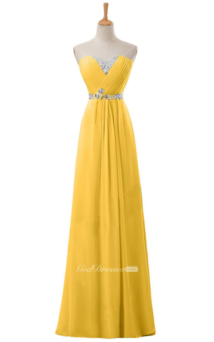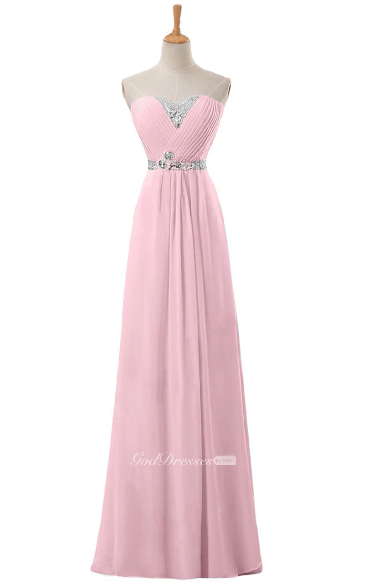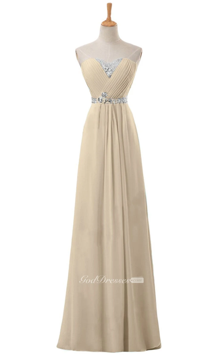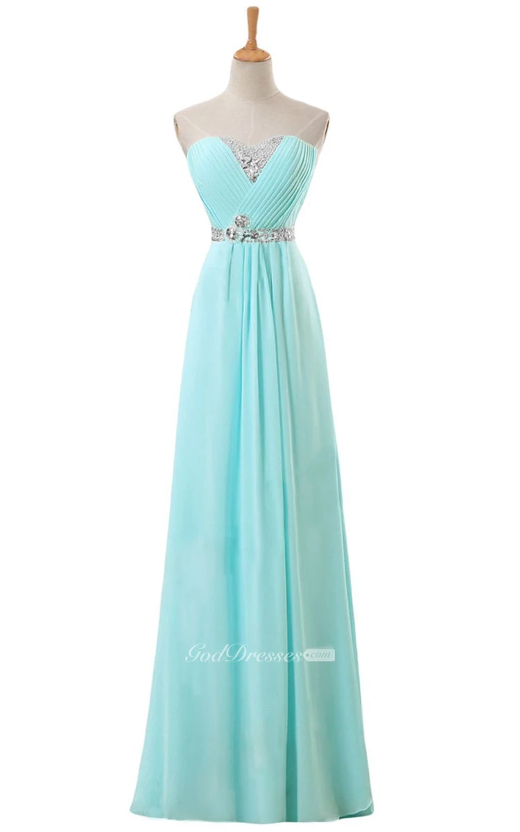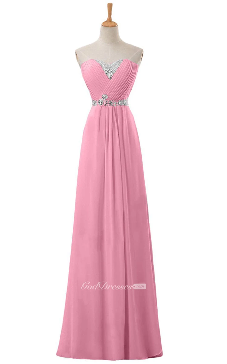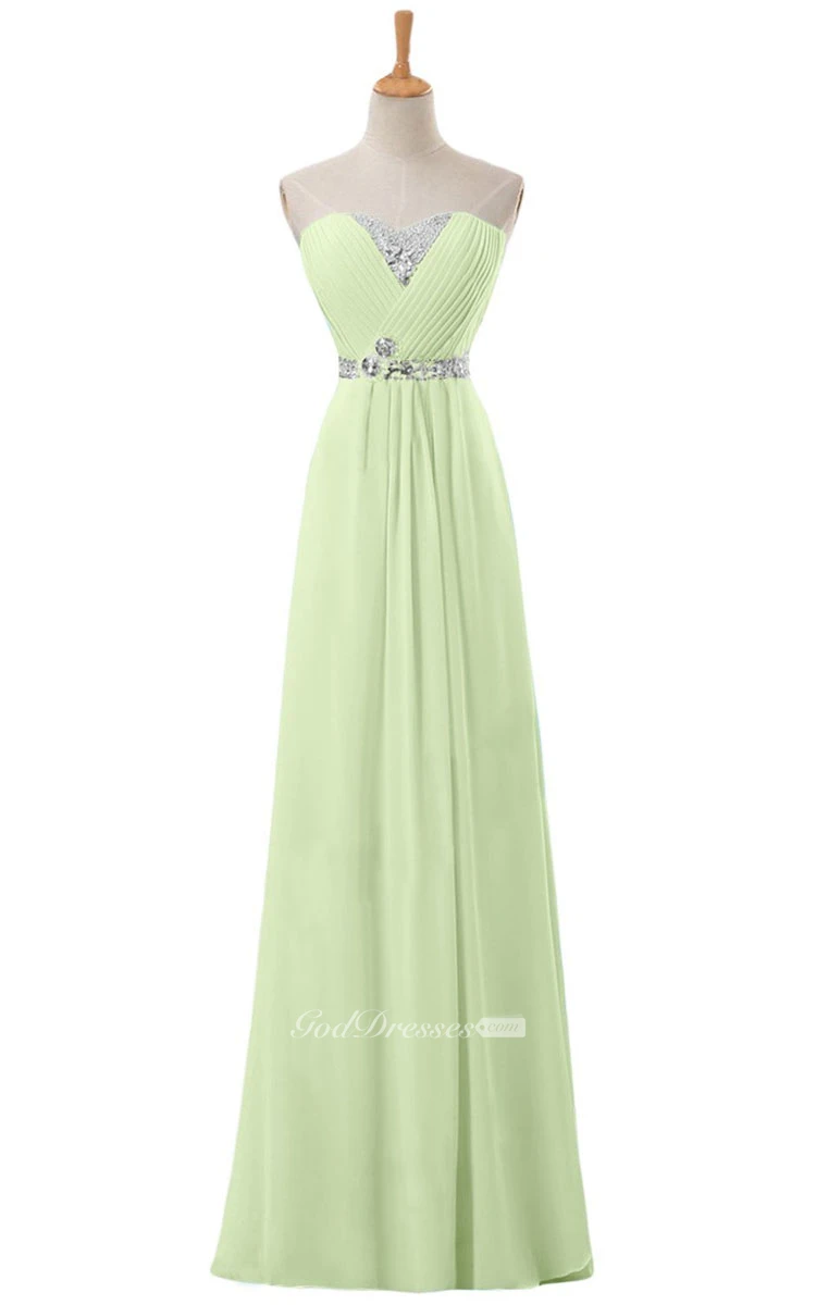 Sweetheart Rhinestoned Pleated A-line Gown With Zipper Back