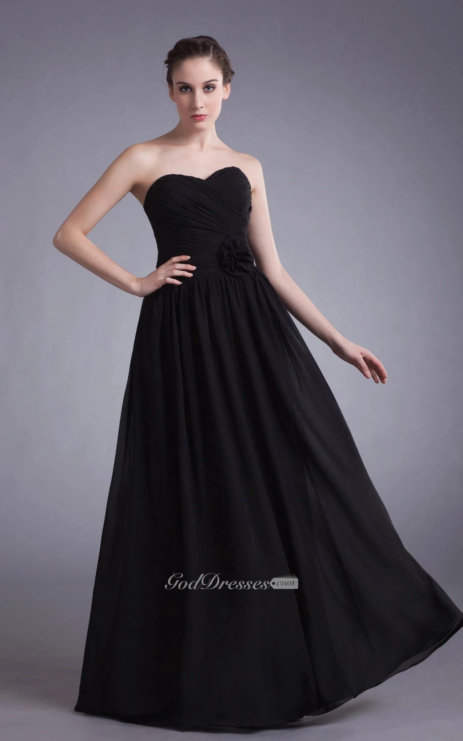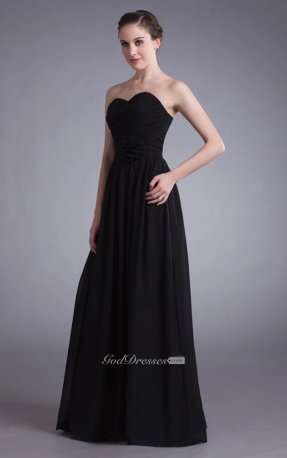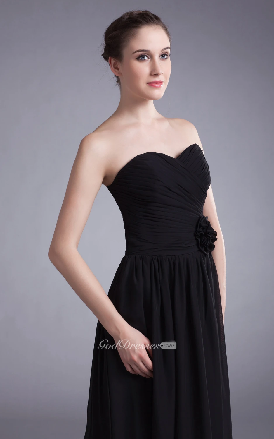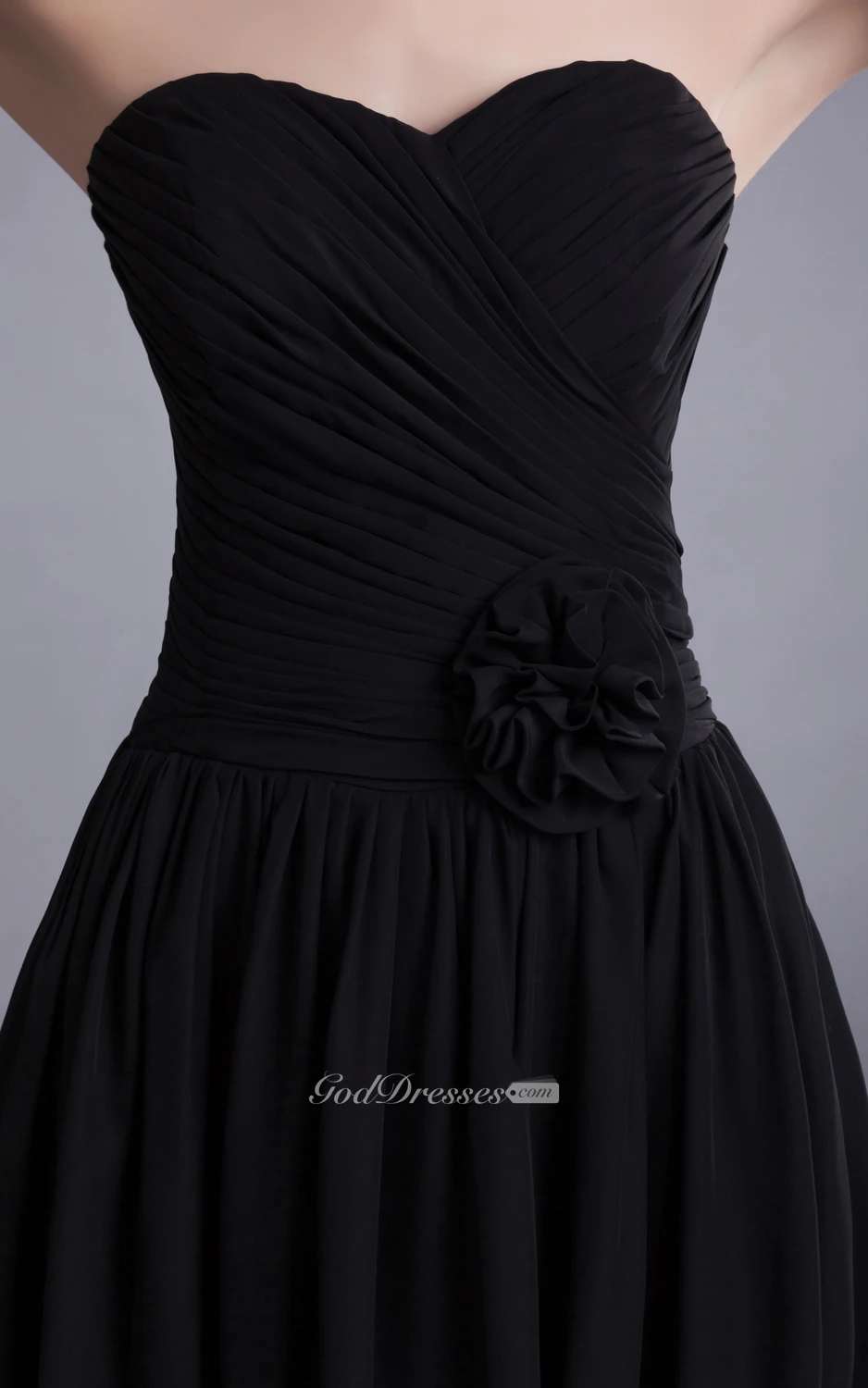 Sweetheart Ruched Chiffon Dress With Floral Waist