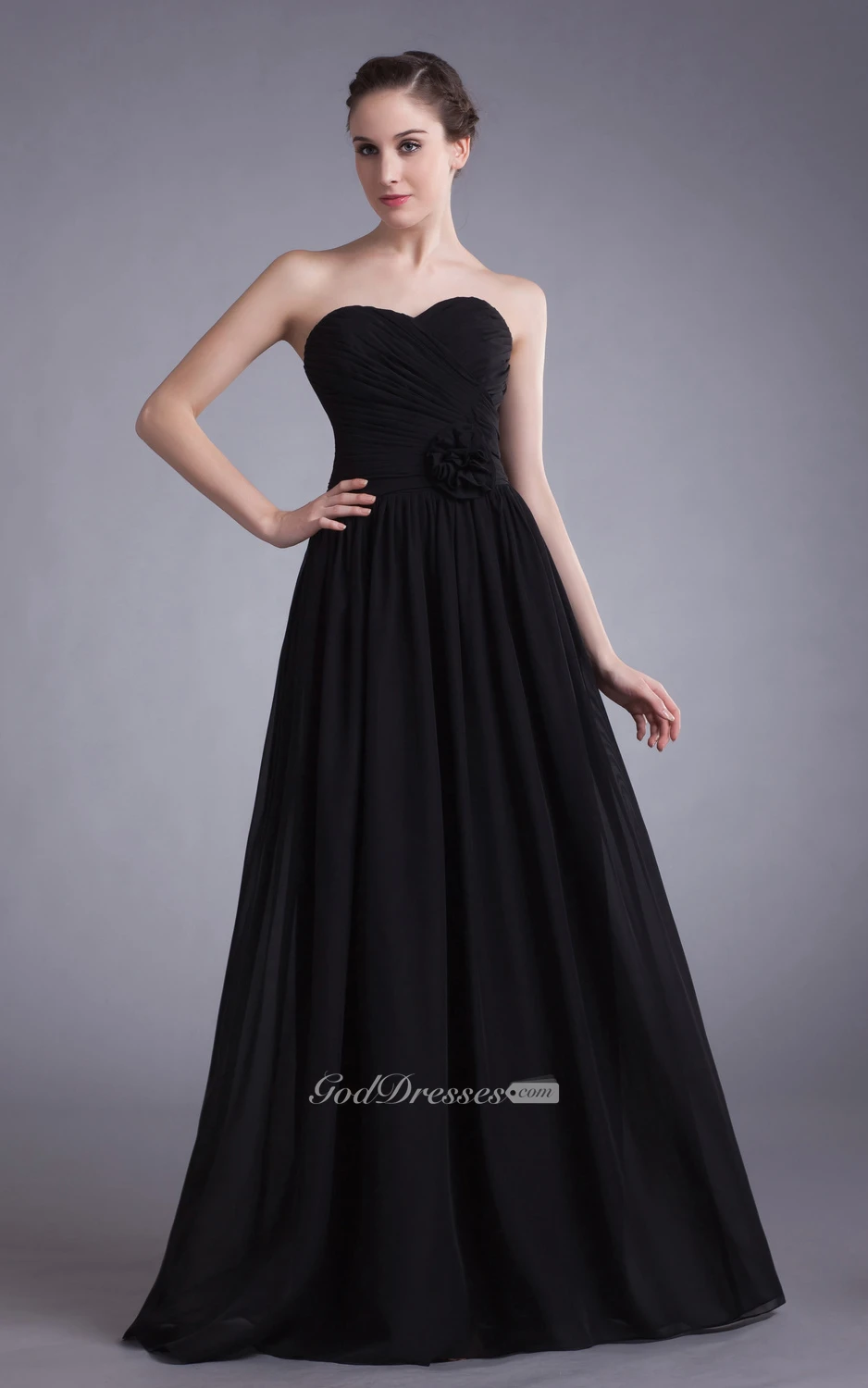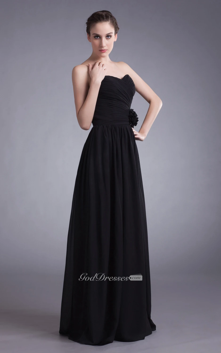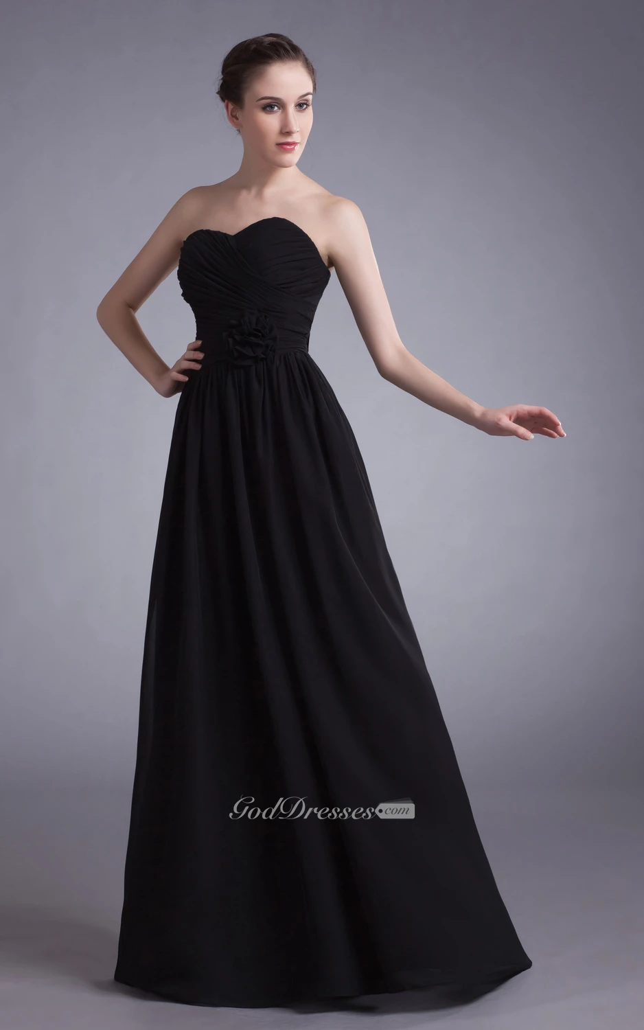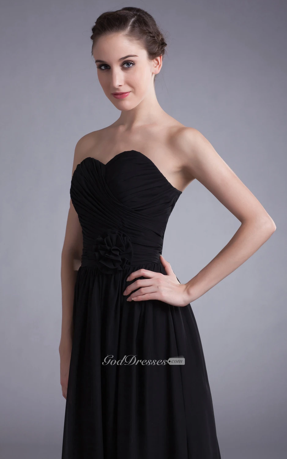Sweetheart Ruched Chiffon Dress With Floral Waist