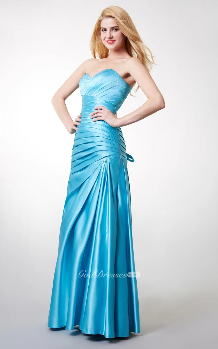 Sweetheart Ruched Mermaid Long Satin Dress With Lace-up