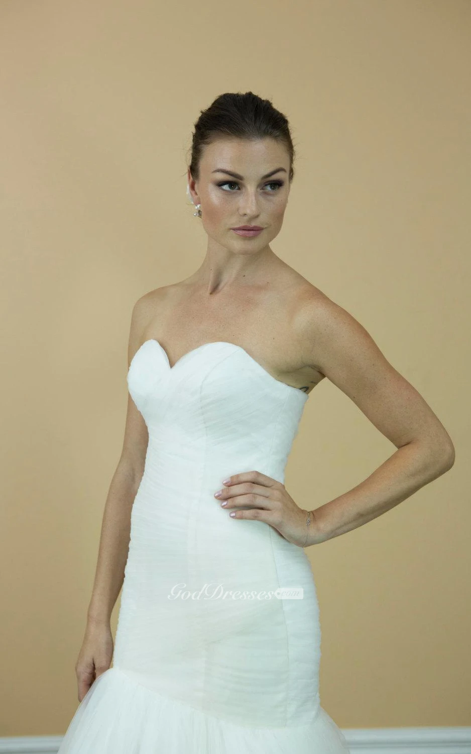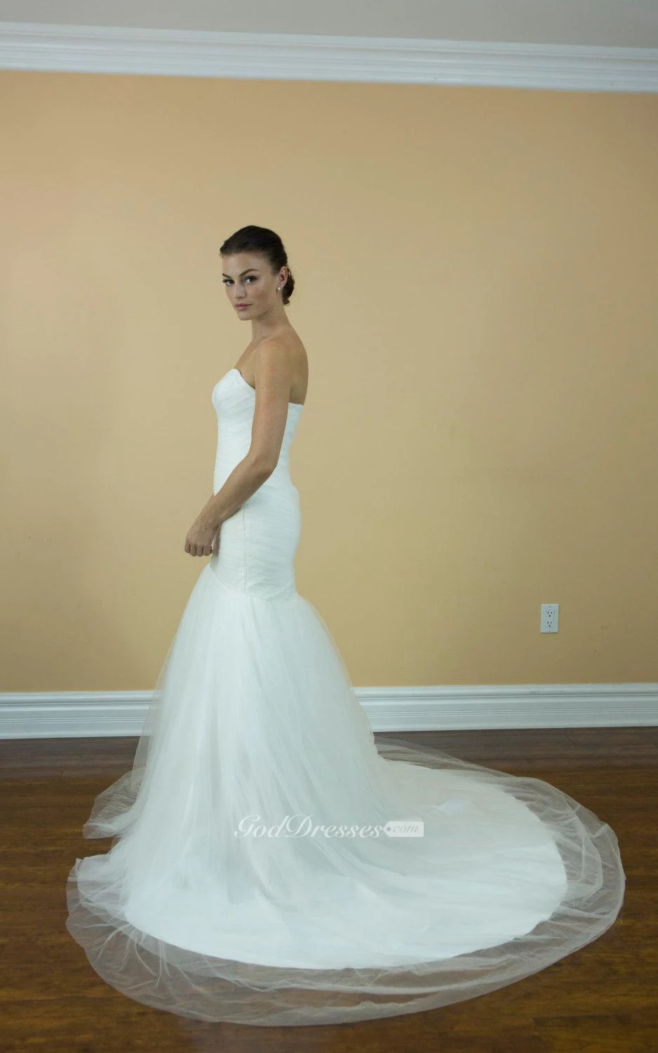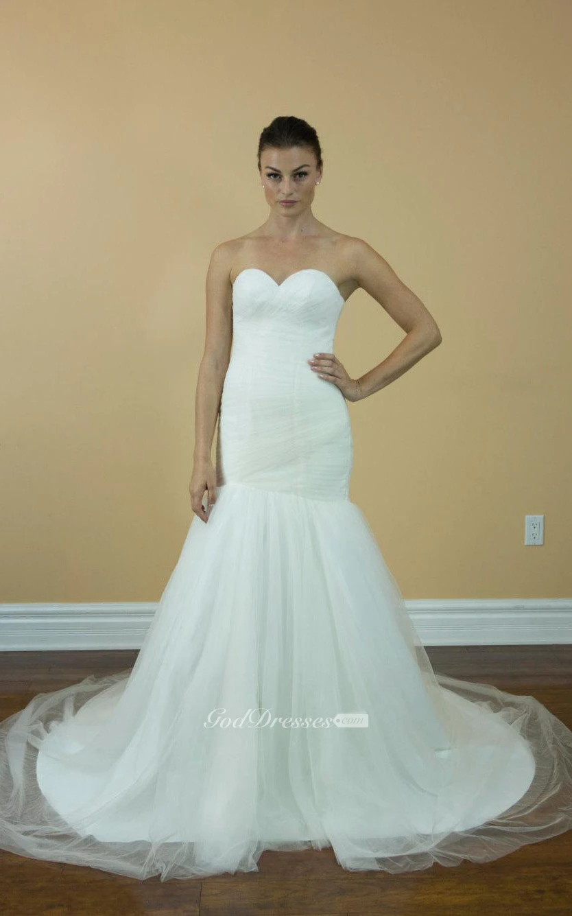 Sweetheart Ruched Mermaid Tulle Dress With Court Train