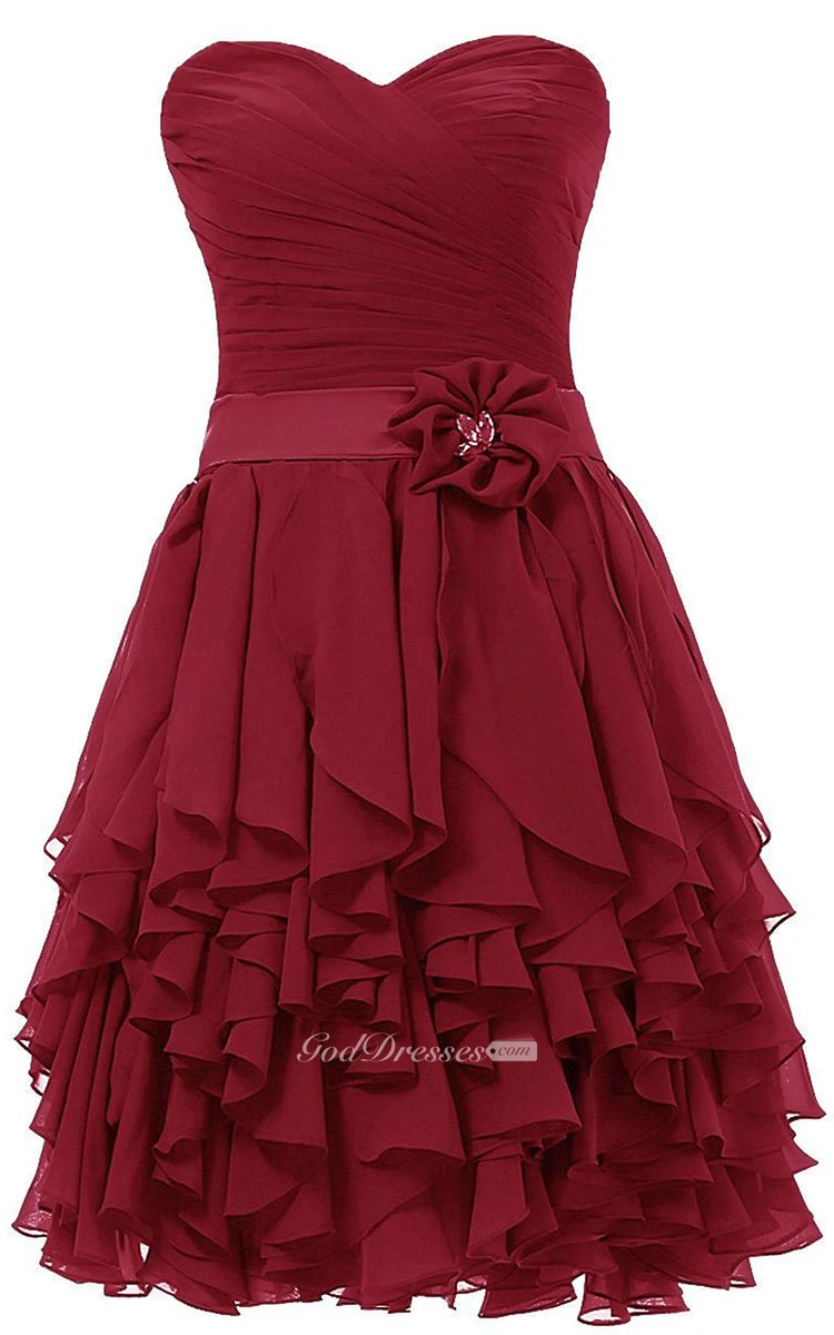 Sweetheart Ruffle Dress Wtih Sash and Flower