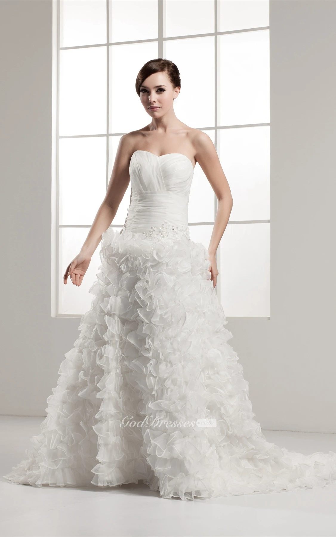 Sweetheart Ruffled A-Line Criss-Cross Gown With Beading