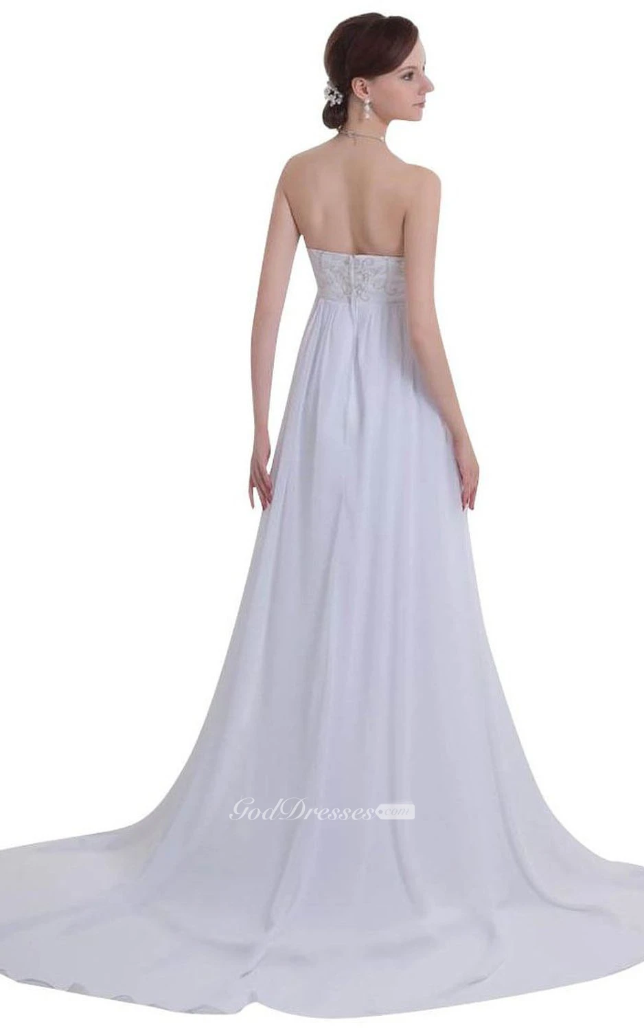 Sweetheart Sequined Bodice Long Pleated Chiffon Dress