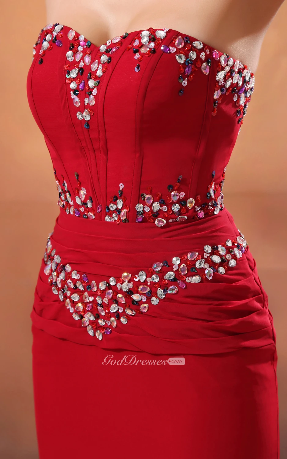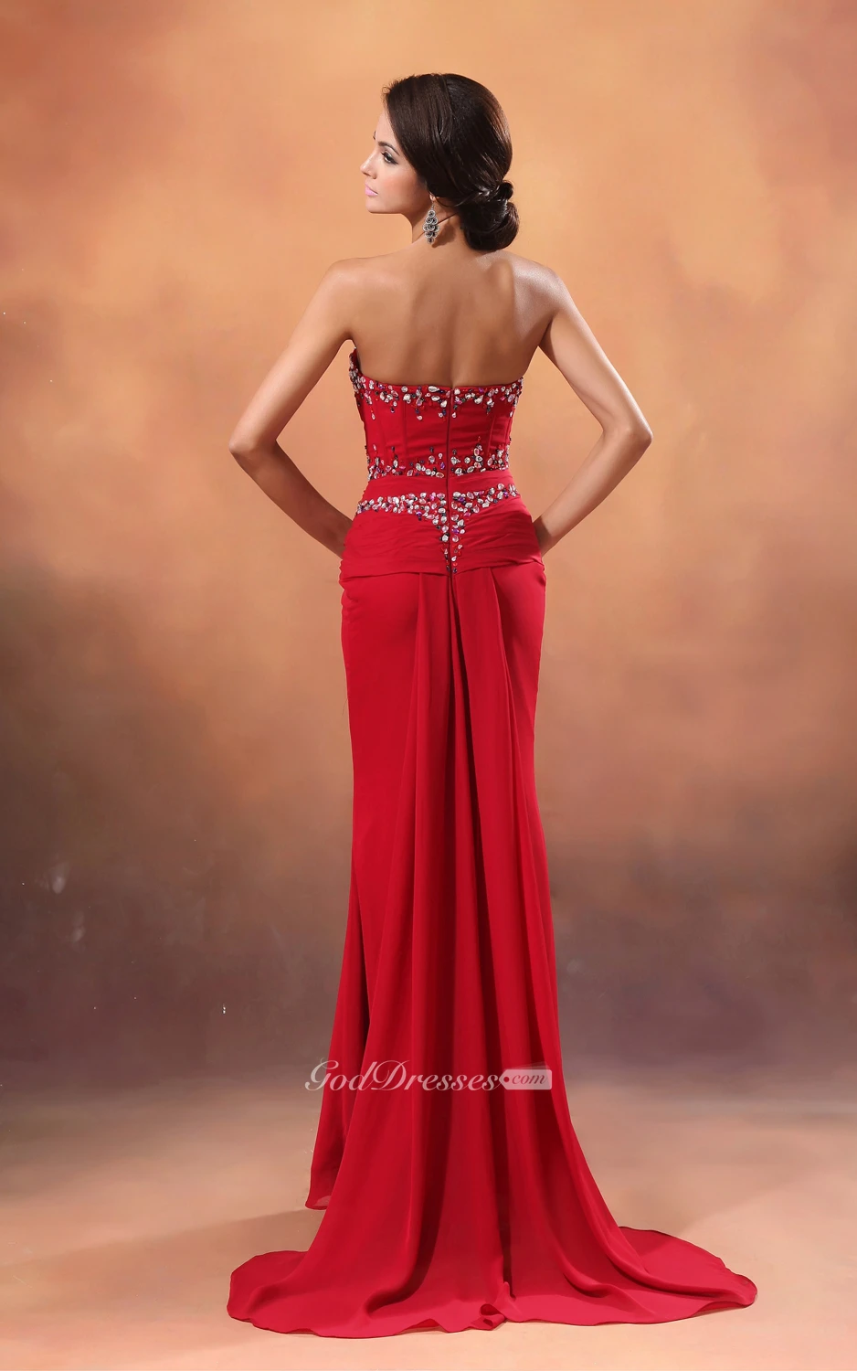 Sweetheart Sequined Neckline Chiffon Sheath Gown