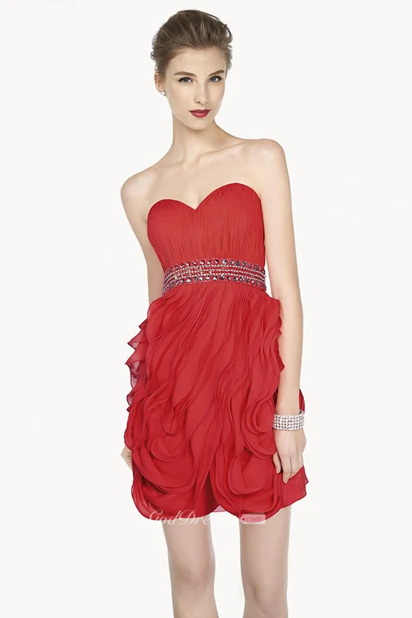 Sweetheart Sheath Mini Prom Dress With Crystal Sash And Ruffles