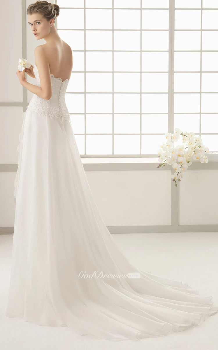 Sweetheart Side Draping Dress With Lace Bodice