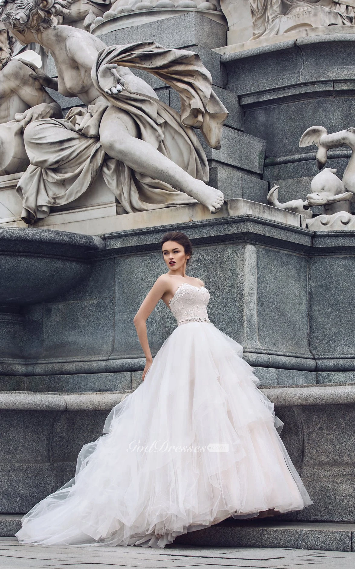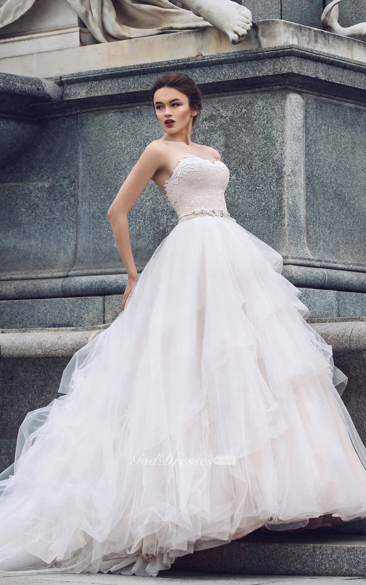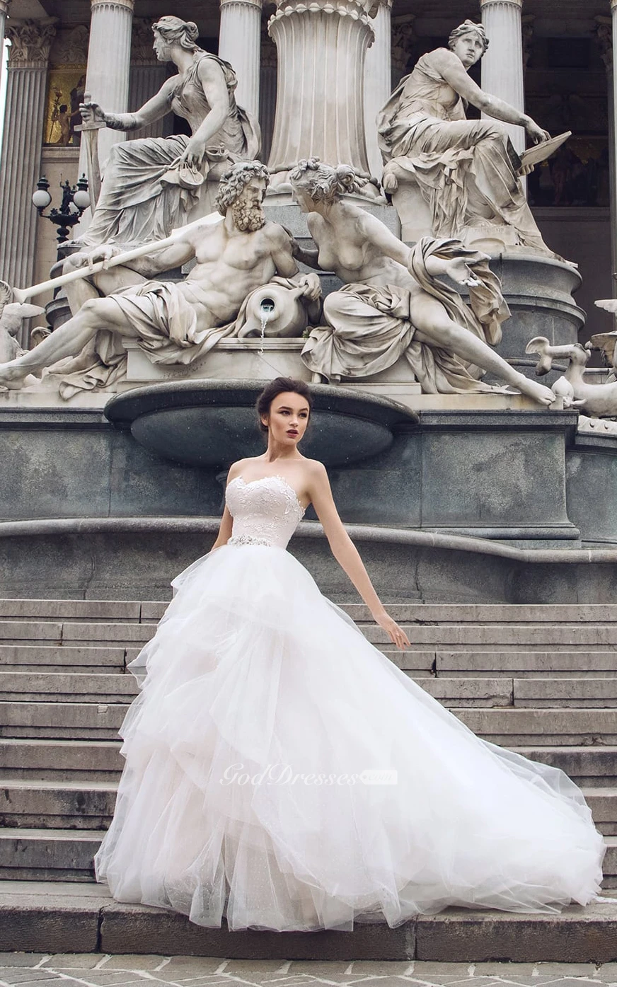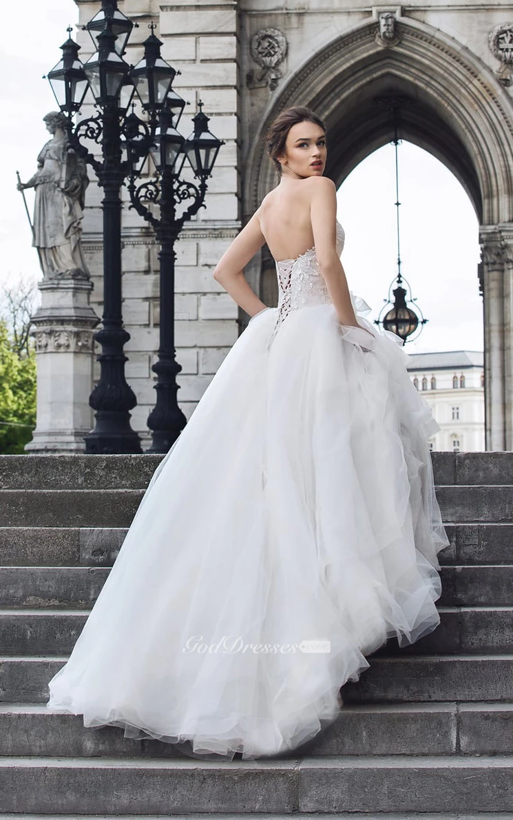 Sweetheart Sleeveless Appliques Cascading Ruffles Corset Back Dress