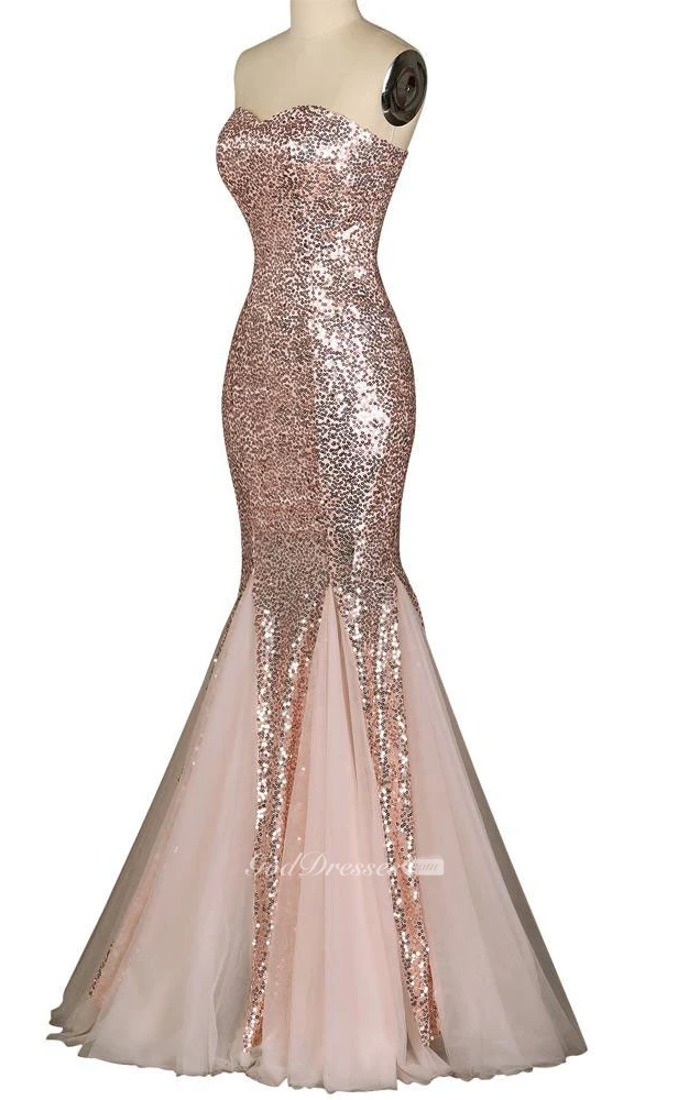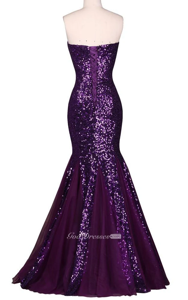 Sweetheart Sleeveless Lace-Up Back Sequins Dress