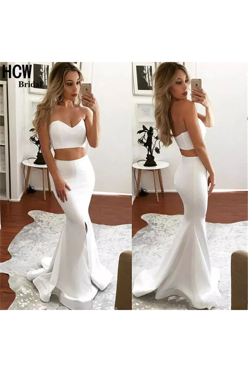 Sweetheart Sleeveless Sweep Train Satin Mermaid Two Piece Dress