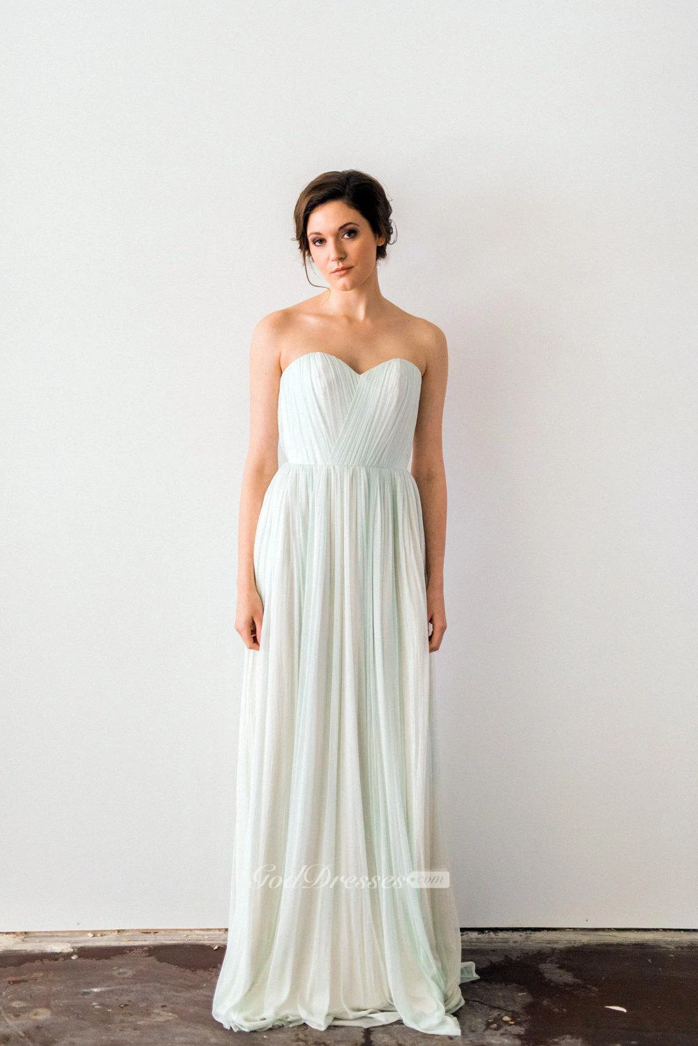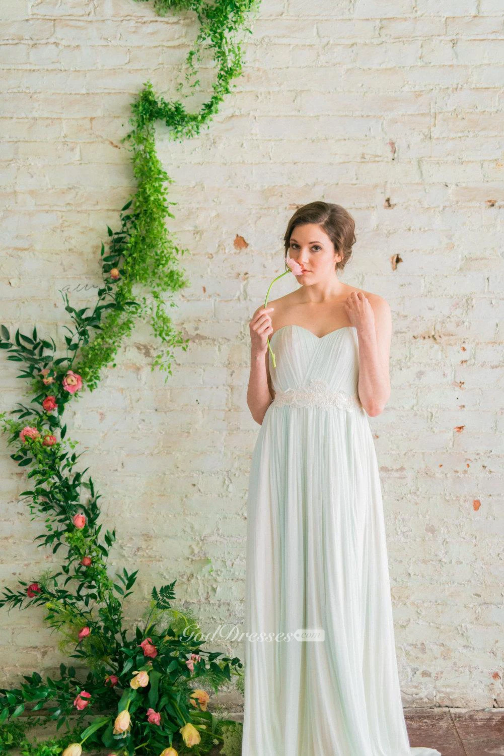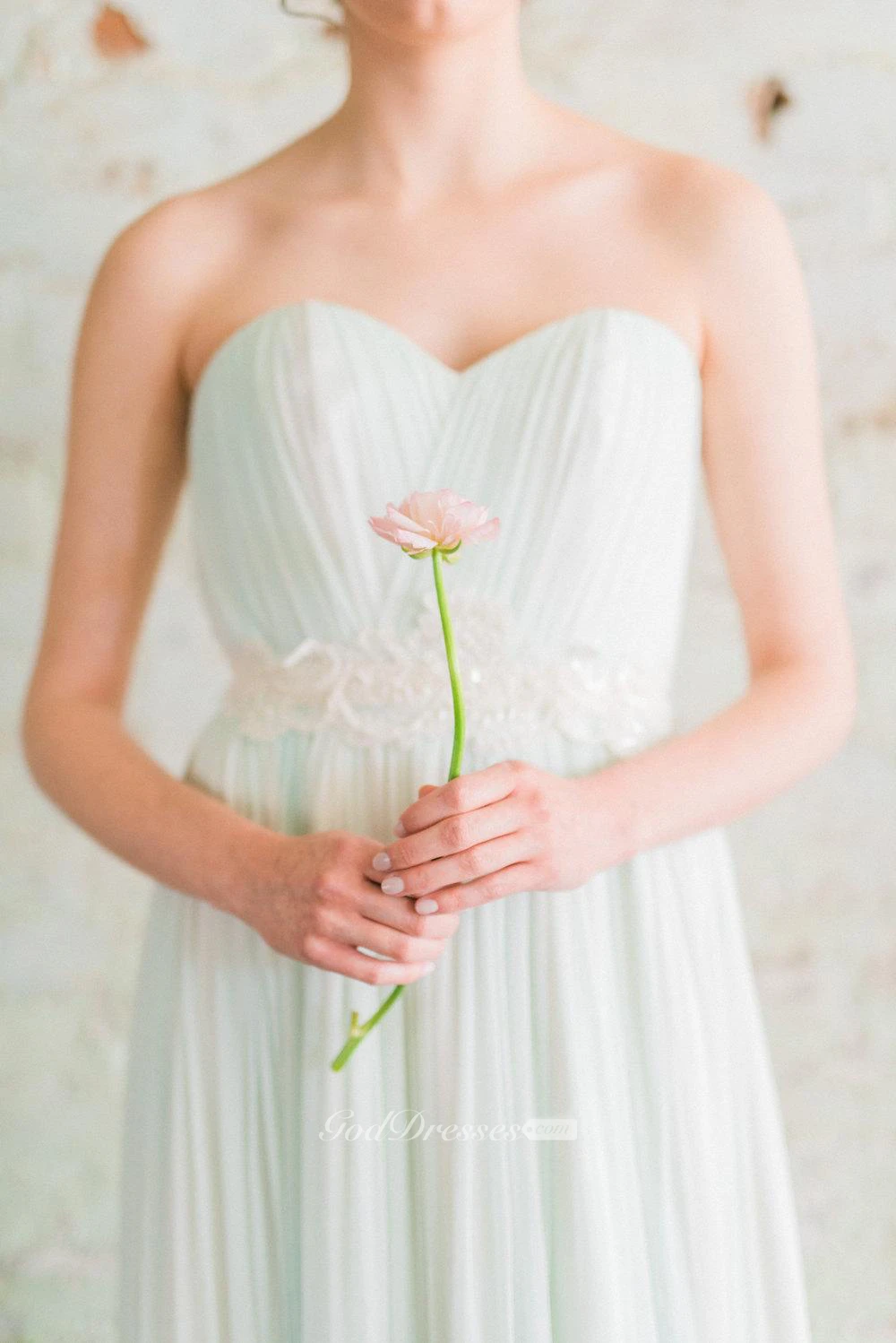 Sweetheart Strapless Column Chiffon Wedding Dress With Beading Sash