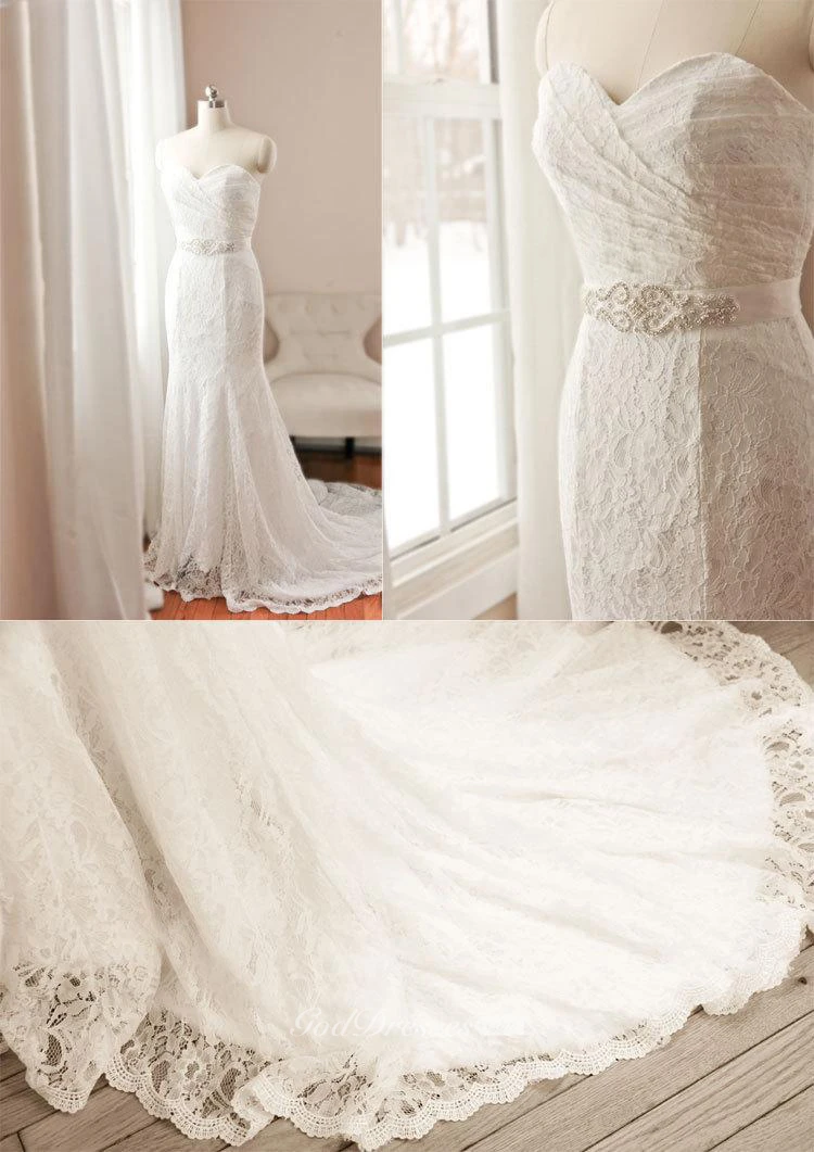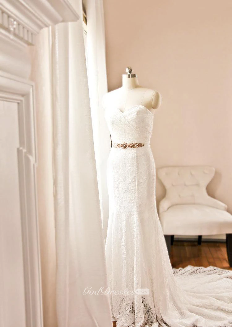 Sweetheart Strapless Trumpet Lace Gown With Silver Rhinestone Sash