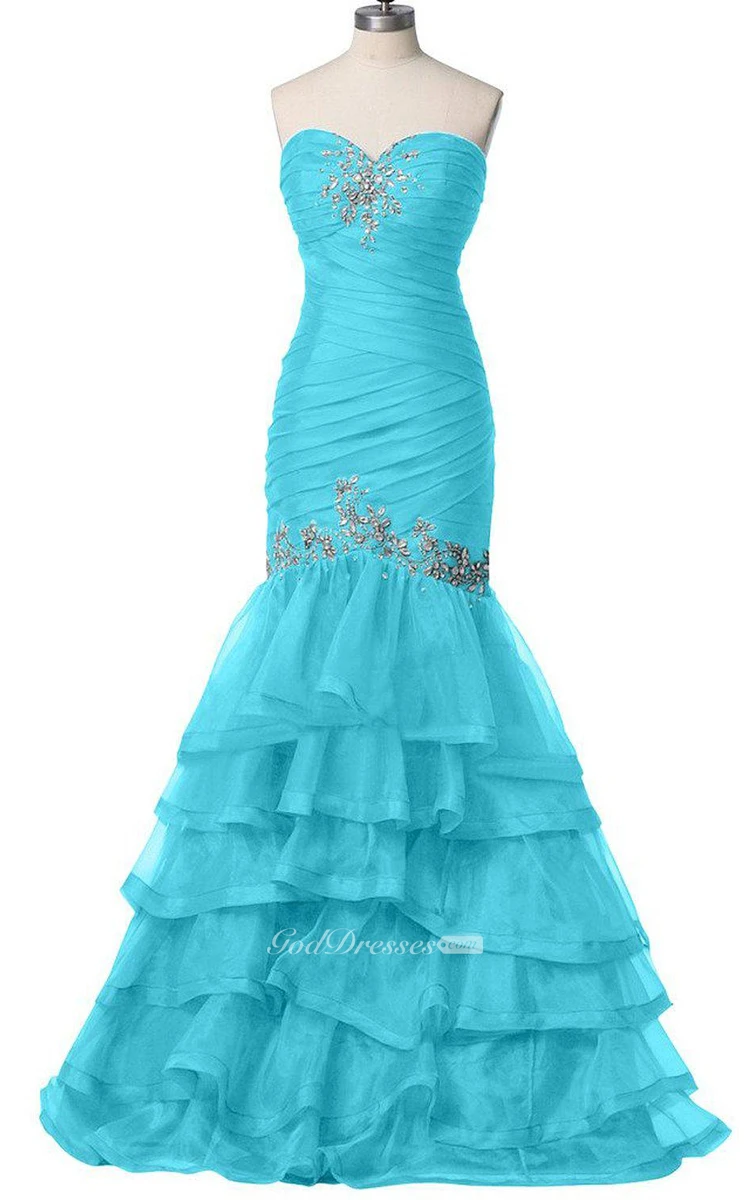 Sweetheart Trumpet Gown With Tiers and Beadings