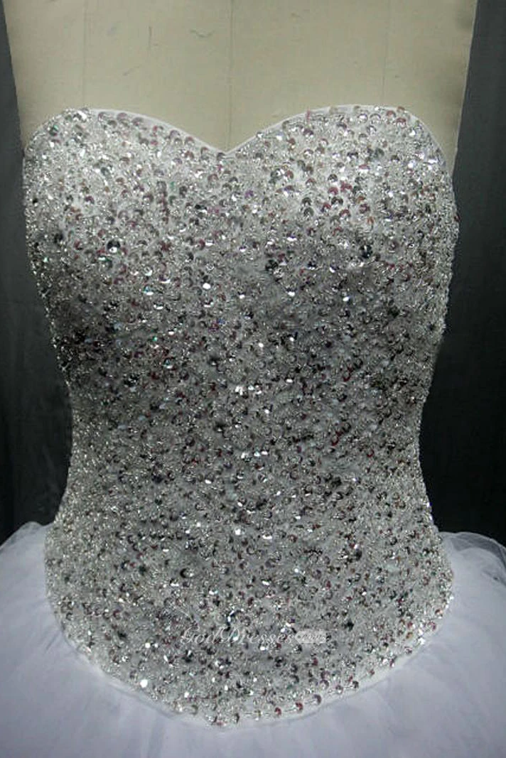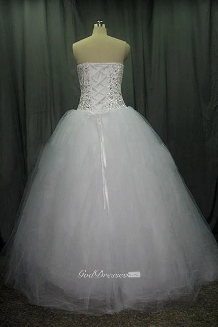 Sweetheart Tulle Beading Crystal Diamond Strapless A-Line Wedding Dresses