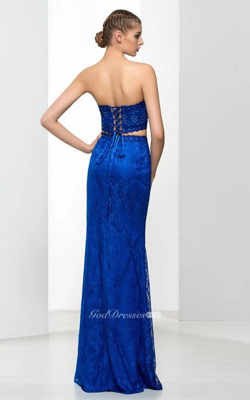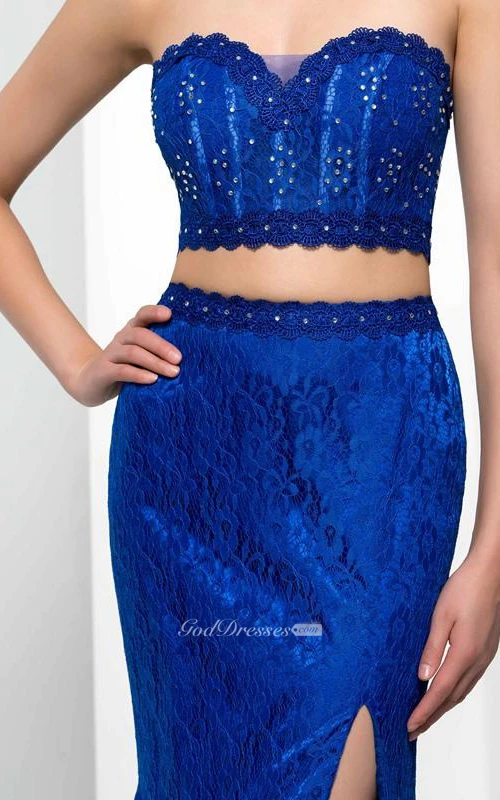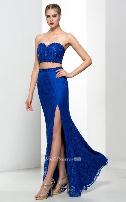Sweetheart Two Pieces Beading Split-Front Lace Prom Dress