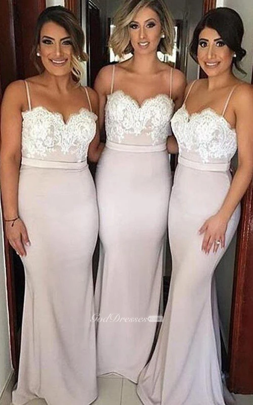 Taffeta Floor-length Trumpet Sleeveless Simple Bridesmaid Dress with Lace and Ruffles