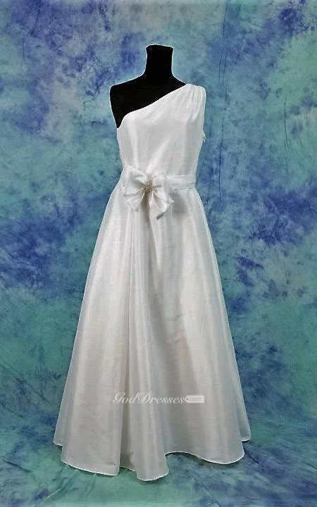 Taffeta One-Shoulder A-Line Dress With Ruching and Bow
