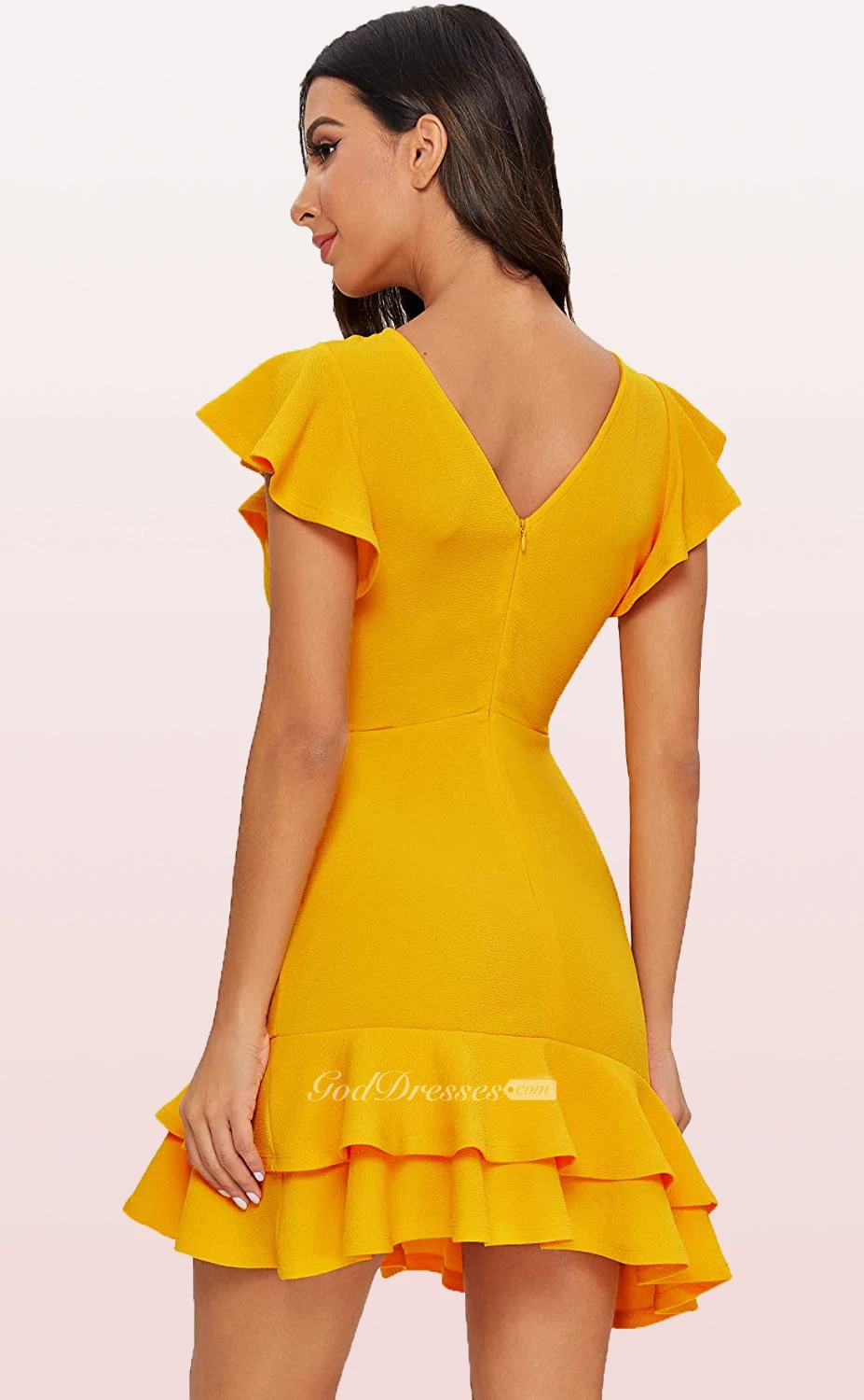 Taffeta Short A Line Short Sleeve Modern Homecoming Dress with Pleats