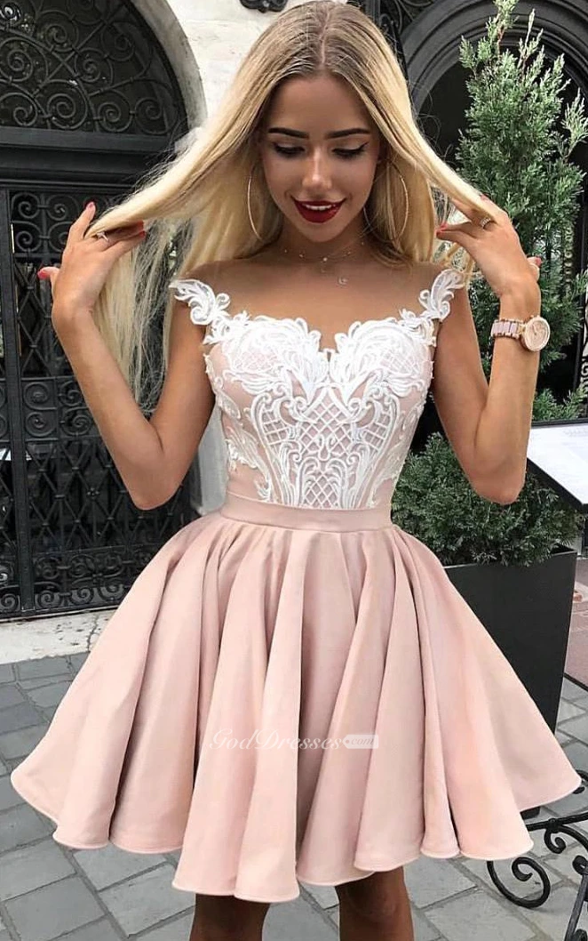 Taffeta Short A Line Sleeveless Casual Modern Homecoming Dress with Appliques