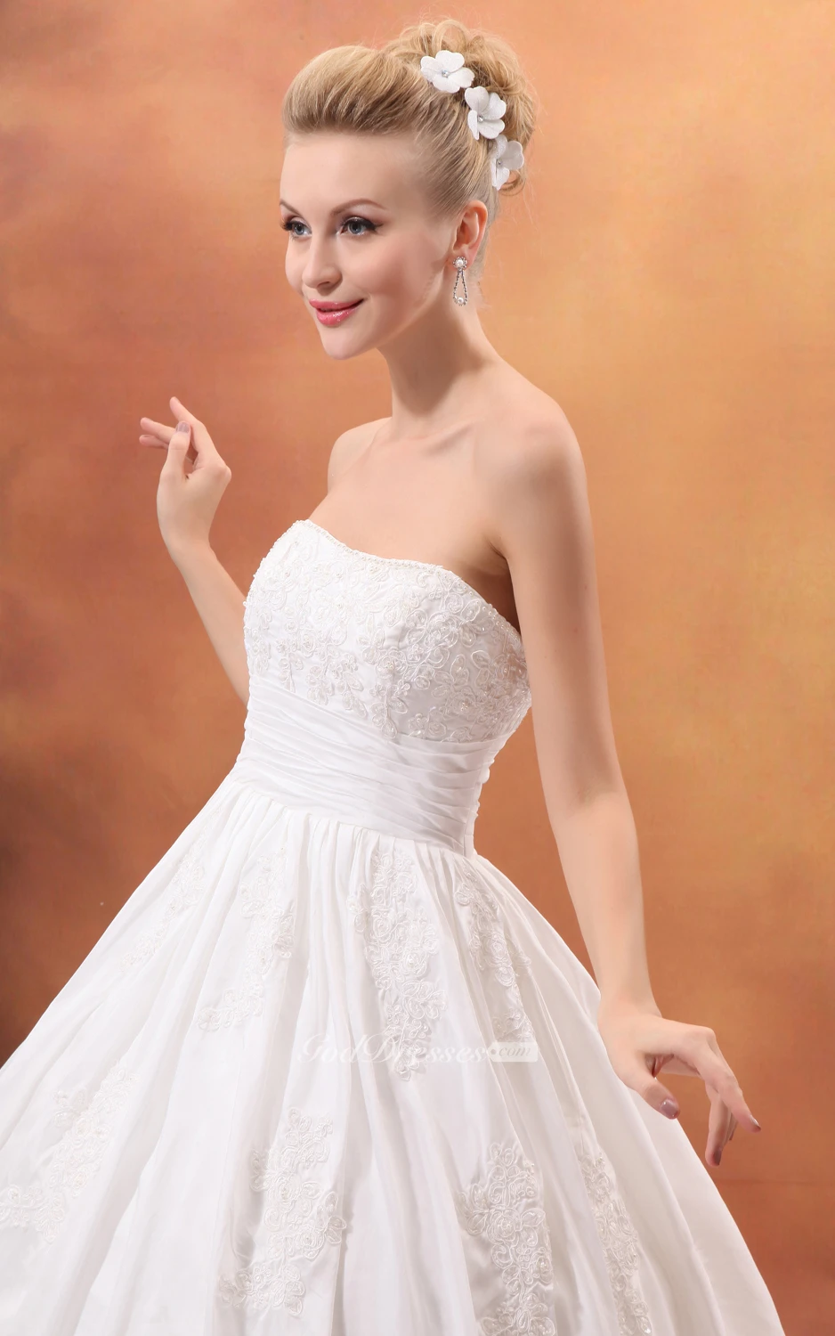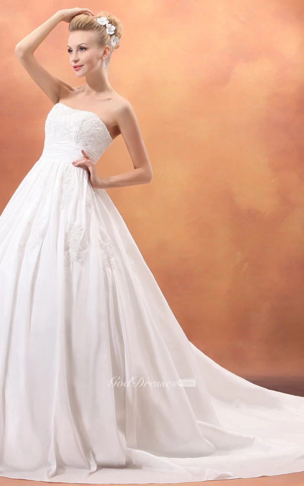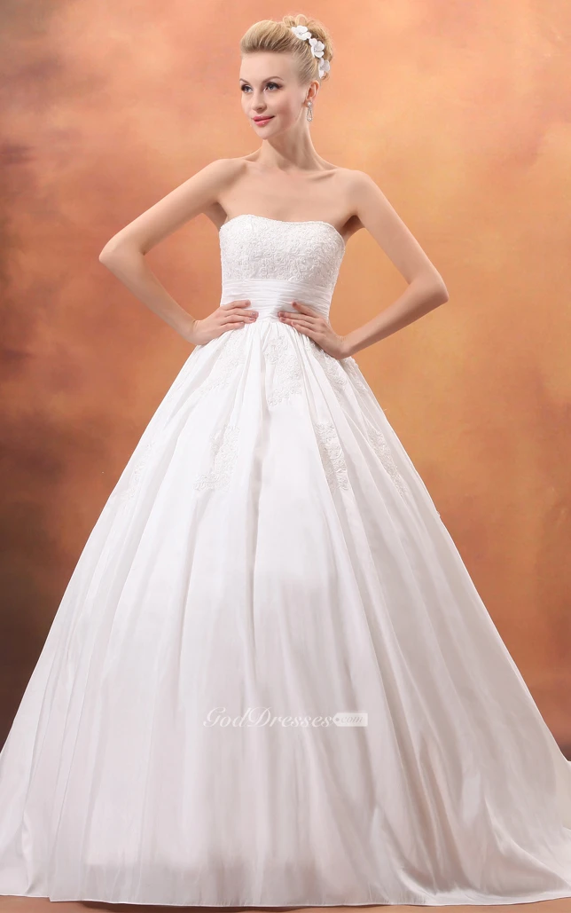 Taffeta Strapless A-Line Ball Gown With Appliques