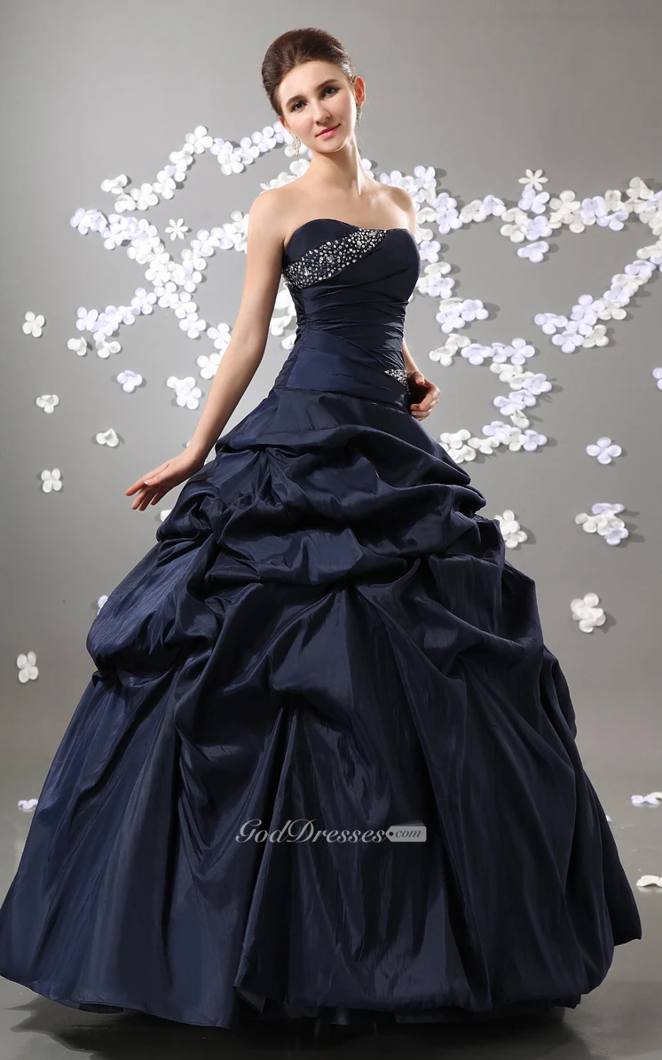 Taffeta Strapless Pick-Up Ruffled Ball Gown With Beading