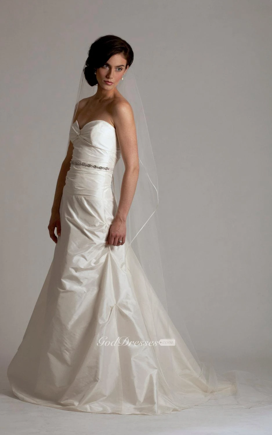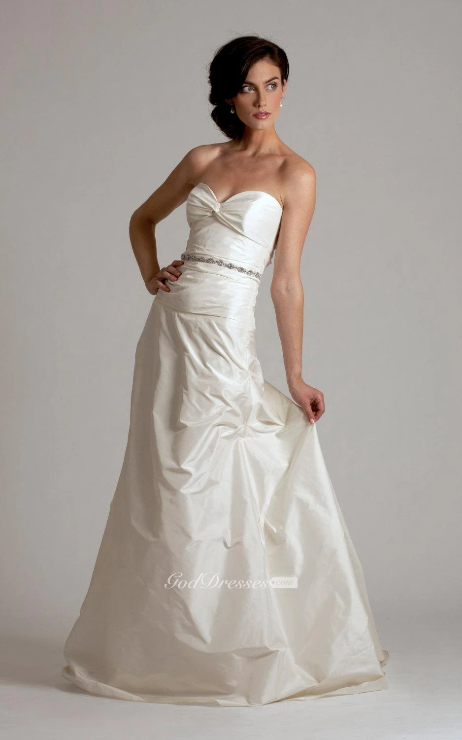 Taffeta Sweetheart A-Line Long Gown With Ruching and Beaded Waist