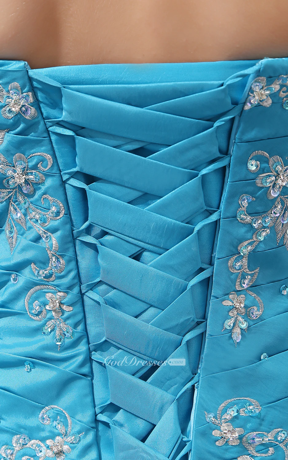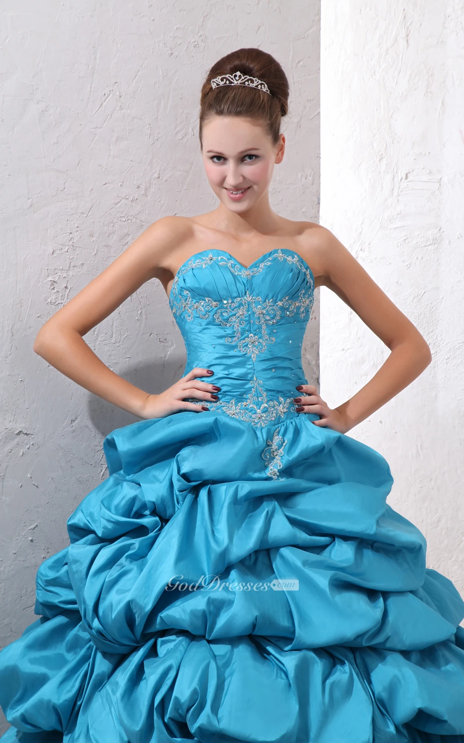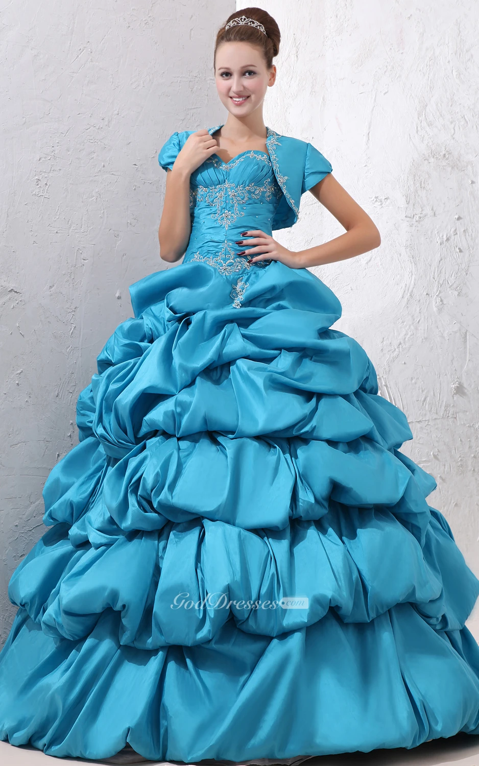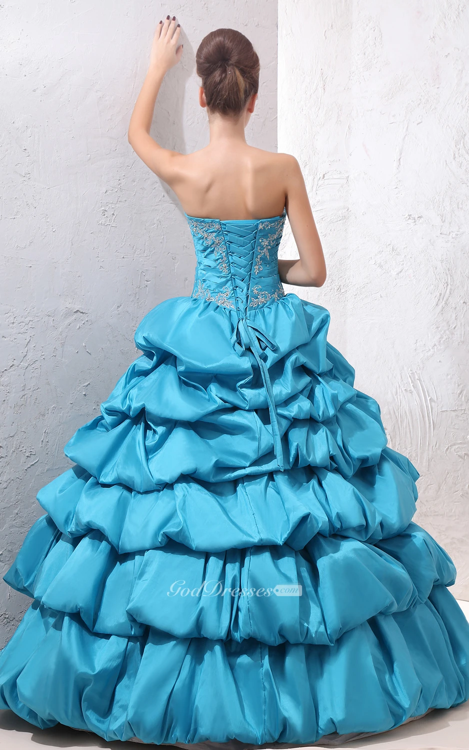 Taffeta Sweetheart Ball Gown With Pick-Up Ruffles and Beading