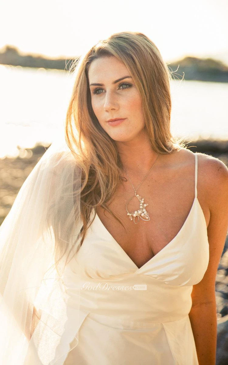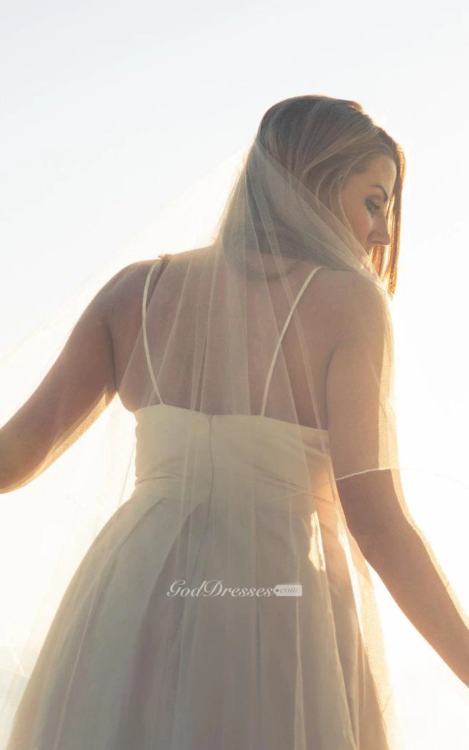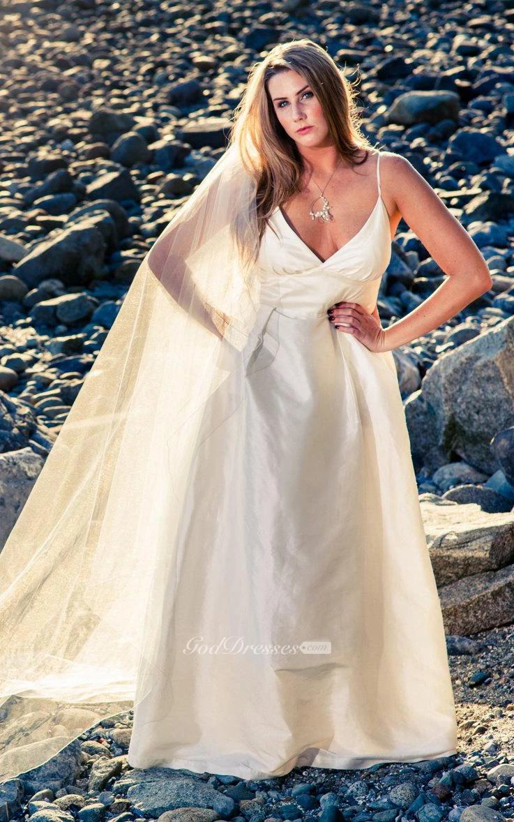 Taffeta V-Neck Sleeveless A-Line Dress With Spaghetti Straps