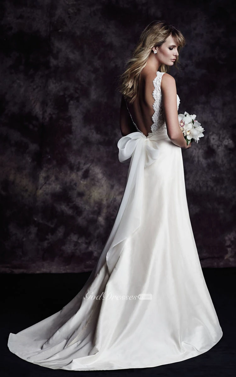 Taffetqa Long Elegant Dress With Bow And Deep-V Back
