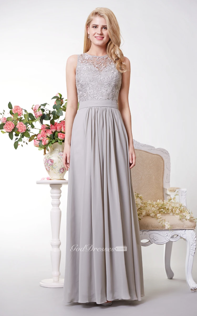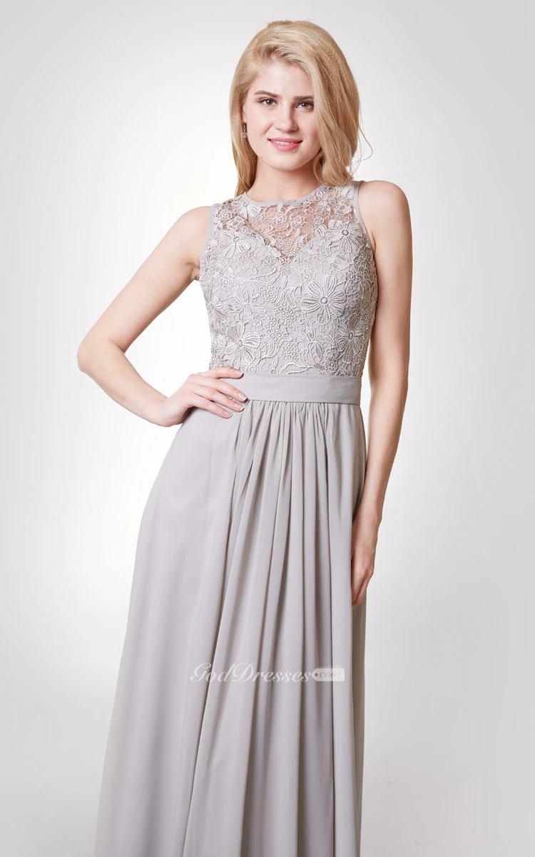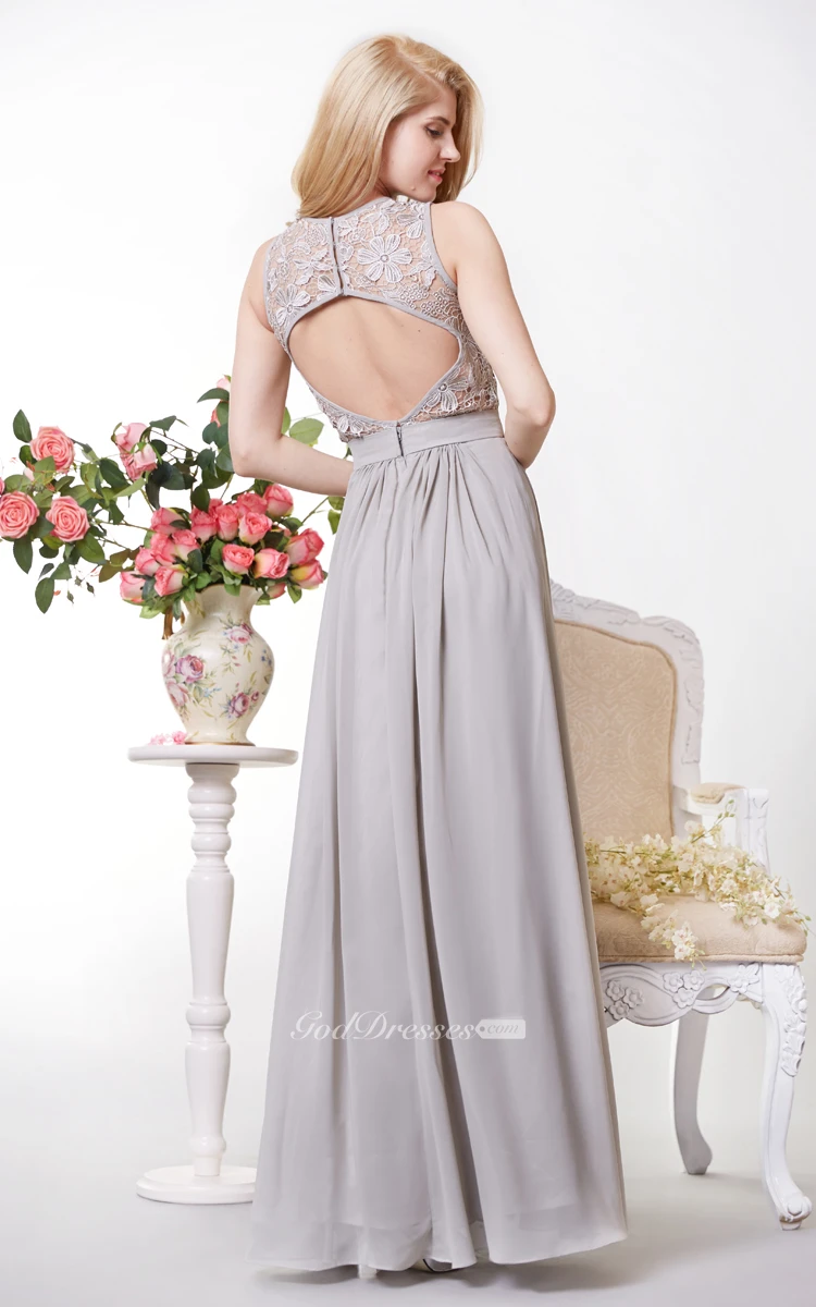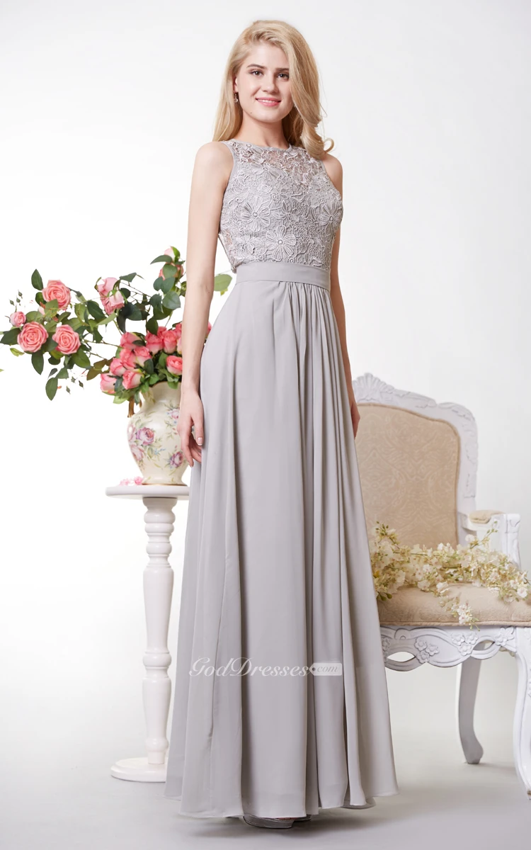 Beautiful bridesmaid dress! I am not able to believe the price of this elegant and graceful long dress. It is exactly as picturized. I have purchased it in five colors. I love its details a lot. My bridesmaids are all the same size and the dresses fit them well with minor adjustments. I can myself use the dress too. Pleated skirt in chiffon is so beautiful. I like the simple yet rich lace bodice and keyhole back. This is the most gorgeous design I could ask for. Material is thick and not at all see-through. I am highly pleased. I could save so much and use for other wedding expenses. It was the correct decision buying here.