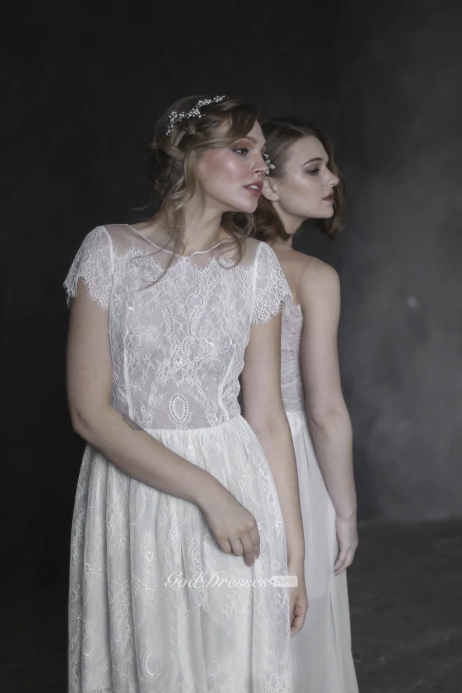 Tea-length Lace Simple Bohemian Wedding Dress With Zipper