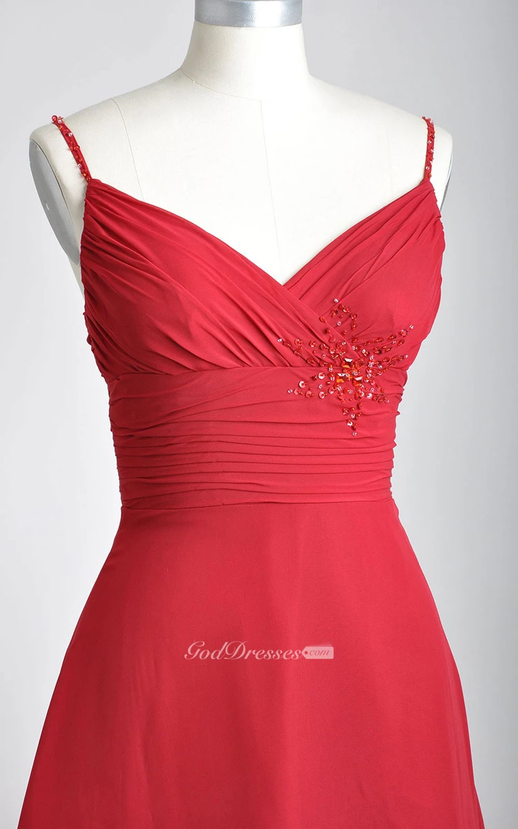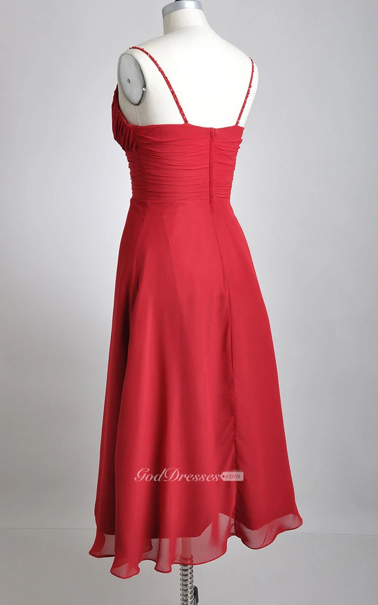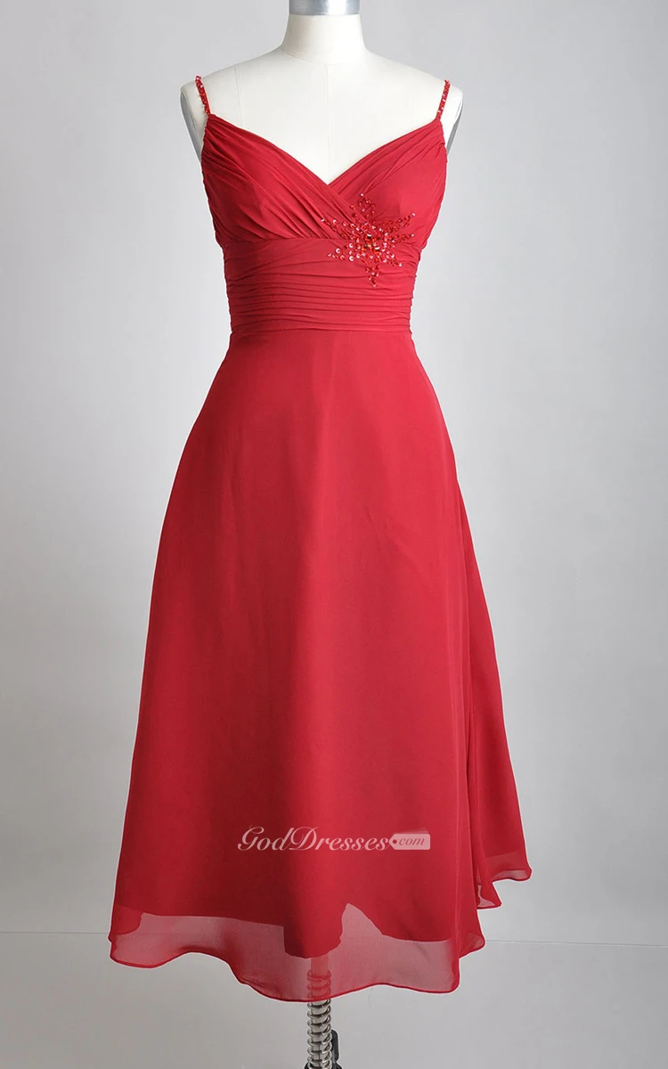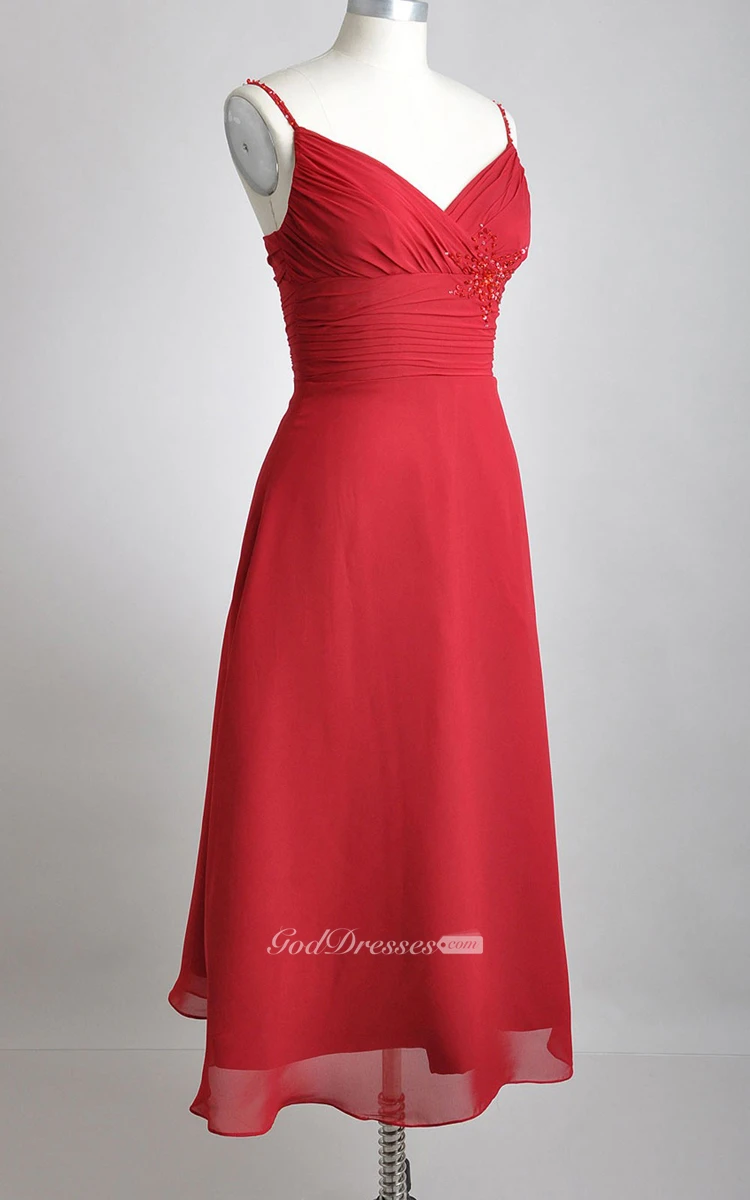 Tea-length V-Neckline A-line Chiffon Bridesmaid Dress With Spaghette Straps