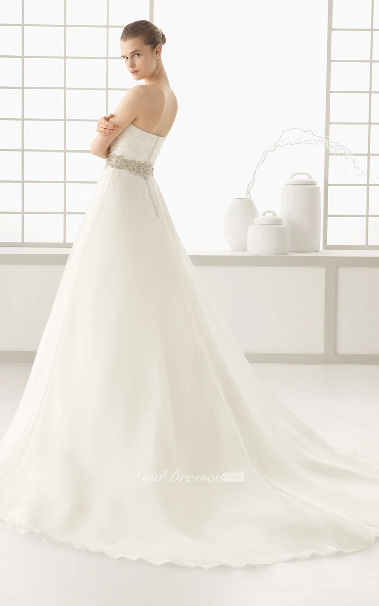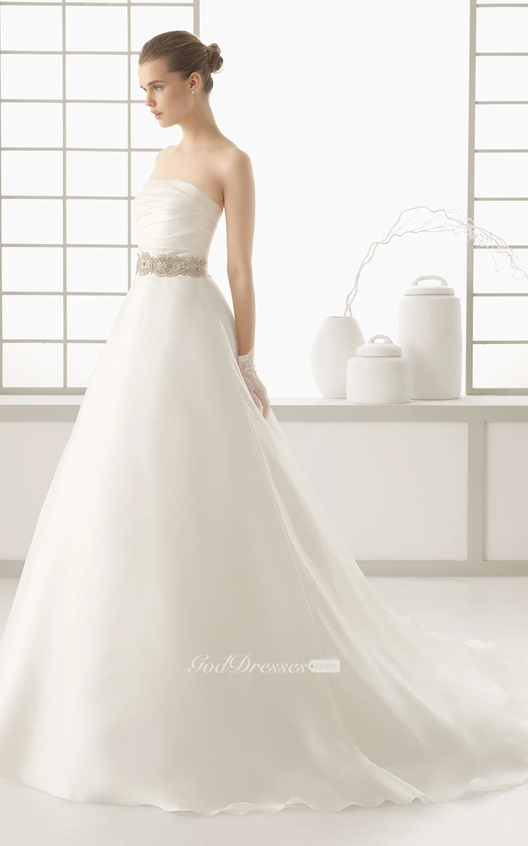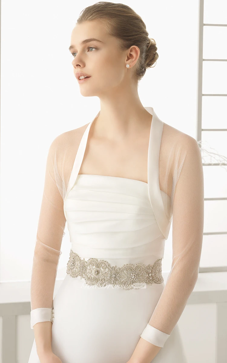Top-Ruched Gown With Illusion Chiffon Cape