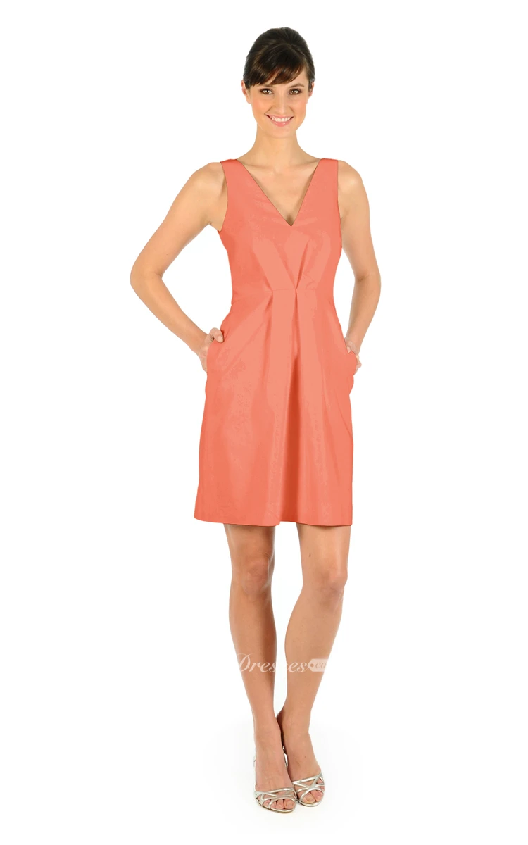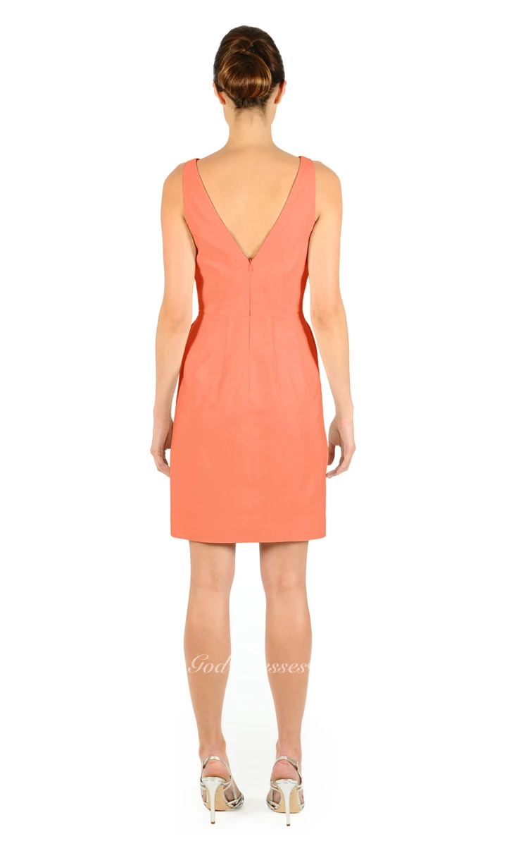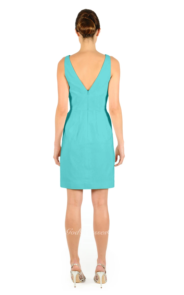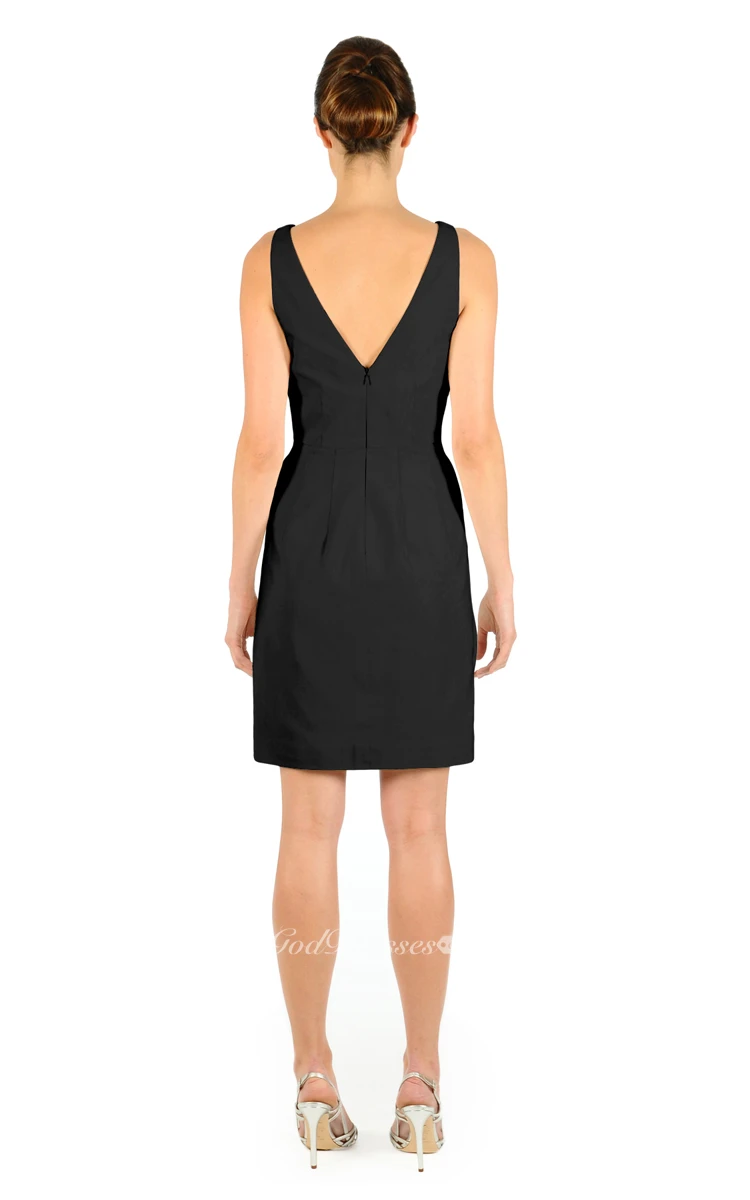 Traditional V-Neck A-Line Sleeveless Dress With Low-V Back